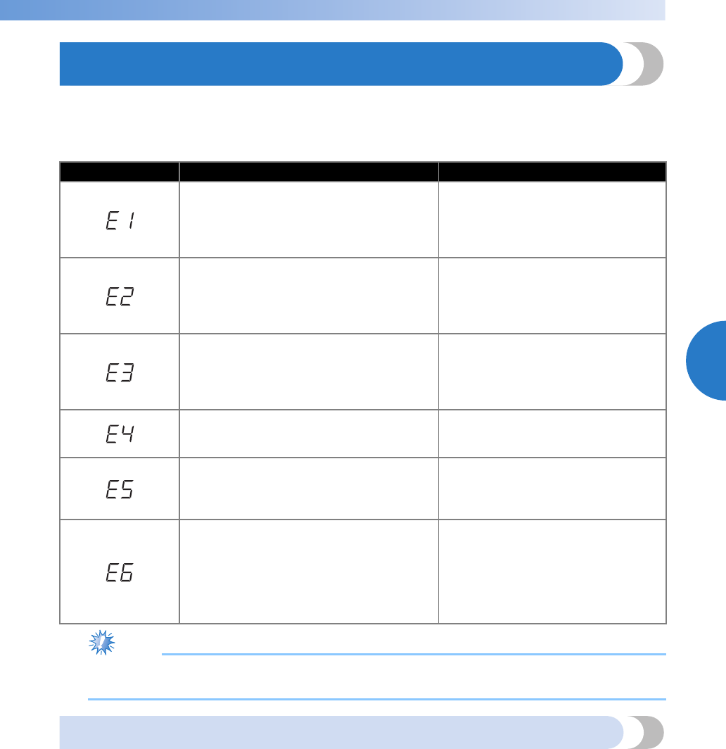 • In the event a malfunction occurs or adjustment is required, first follow the troubleshooting table