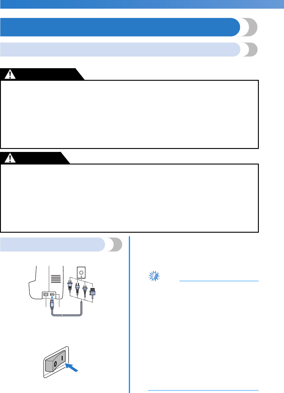 •Do not use extension cords. Plug the machine directly into the electrical outlet.
