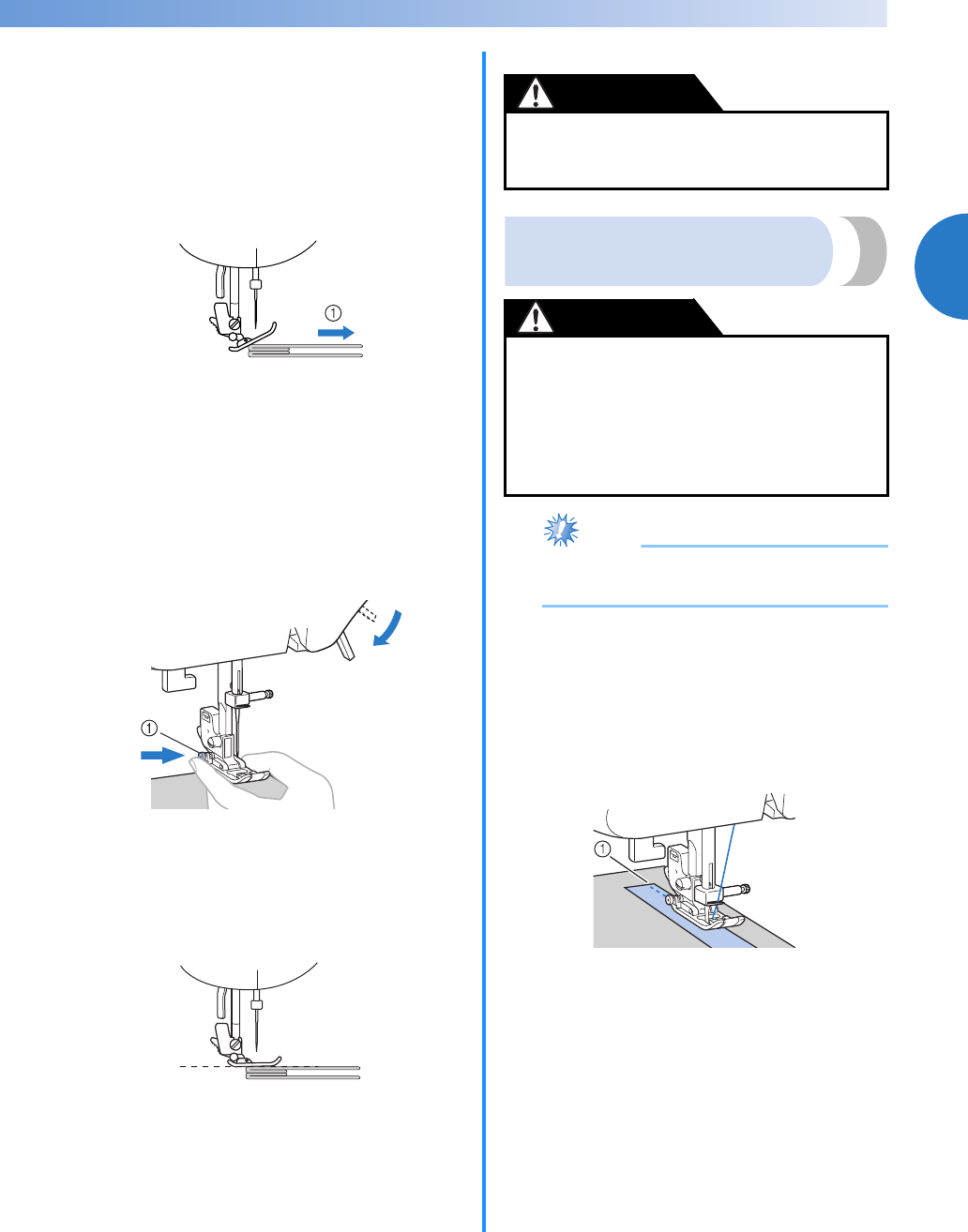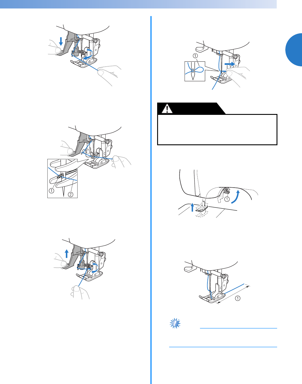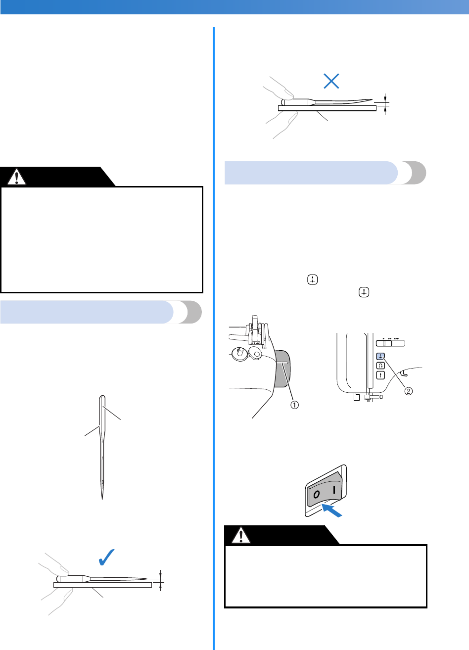 •Always pay close attention to the needle. Do not use bent or damaged needles.