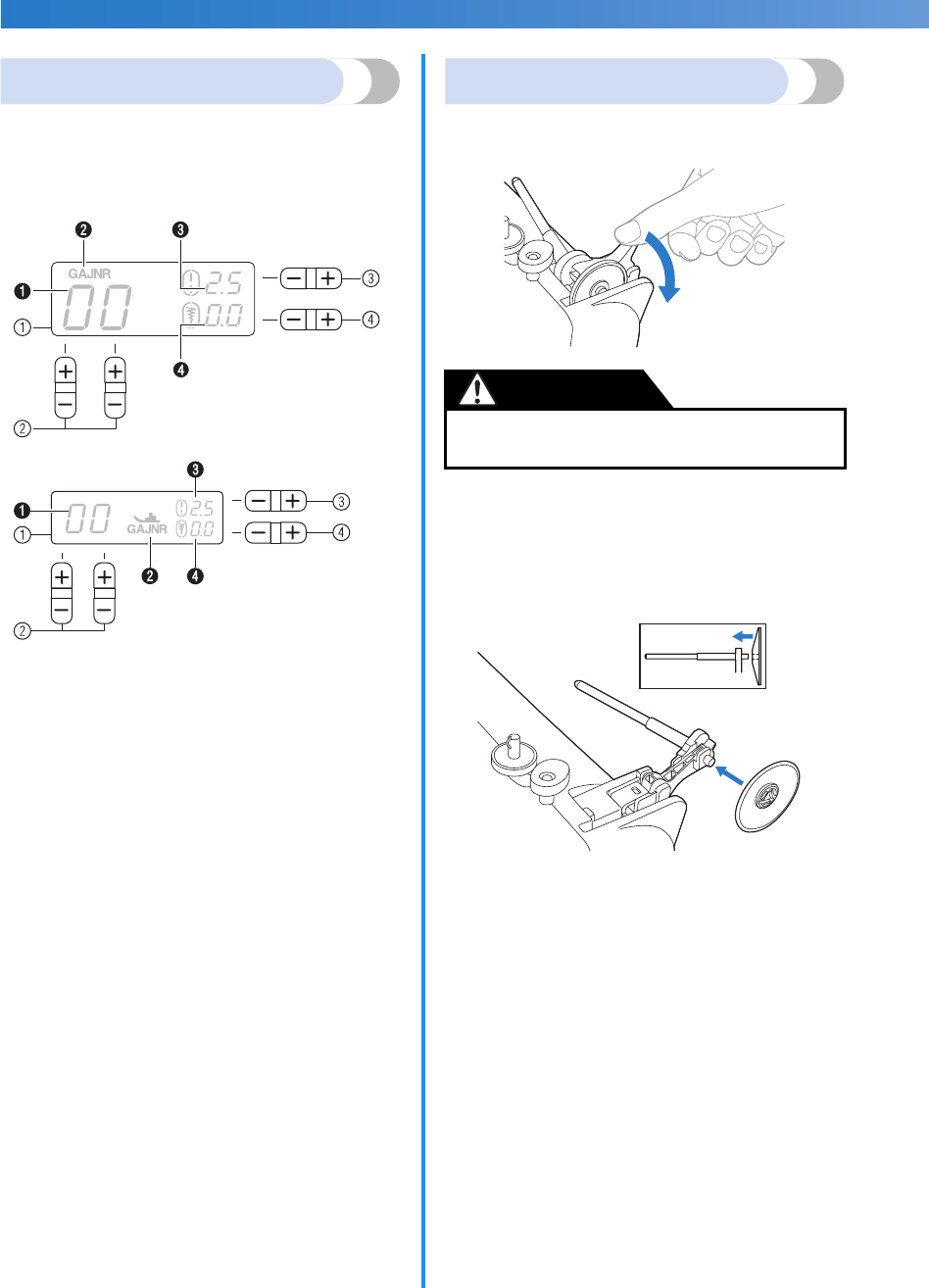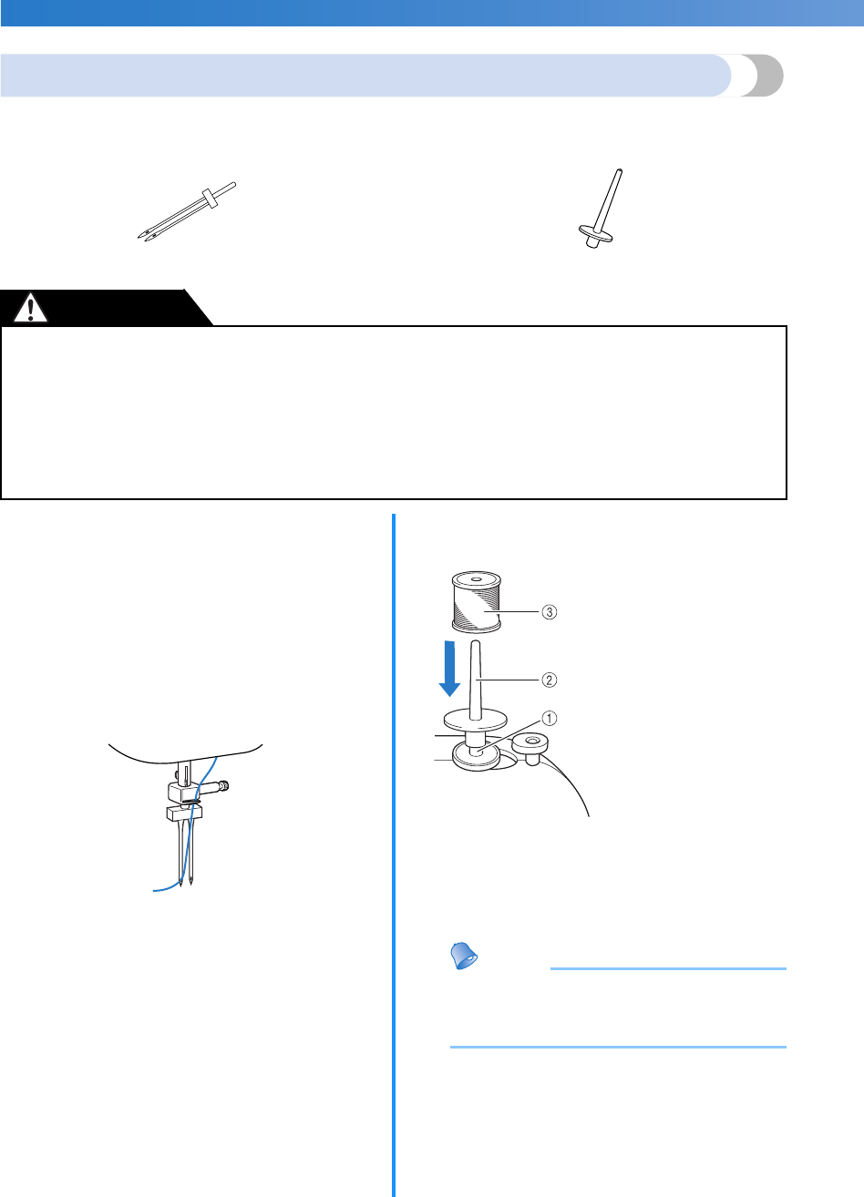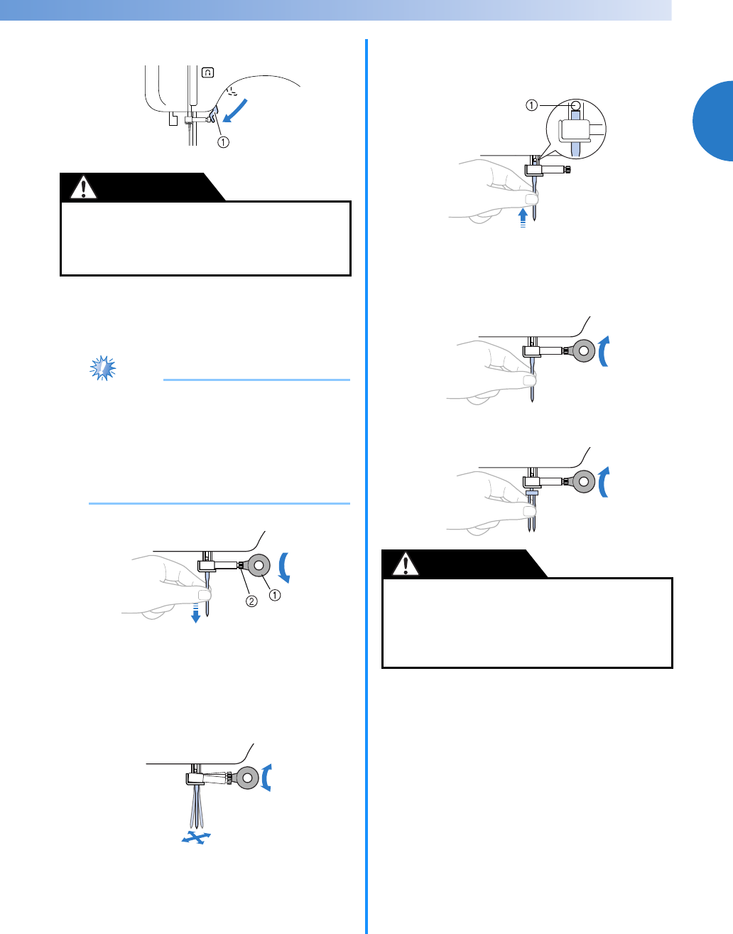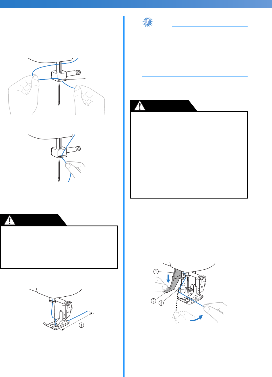 •Always pay close attention to the needle. Do not use bent or damaged needles.