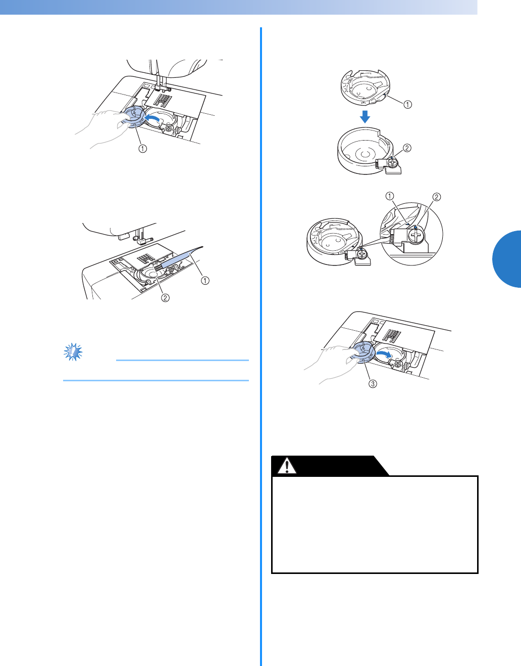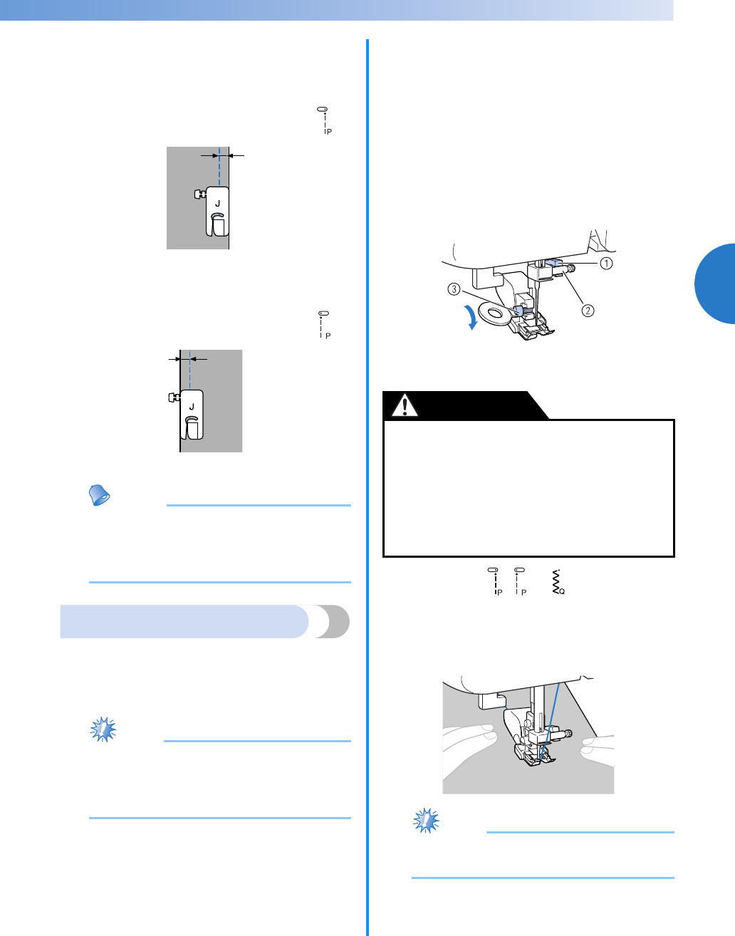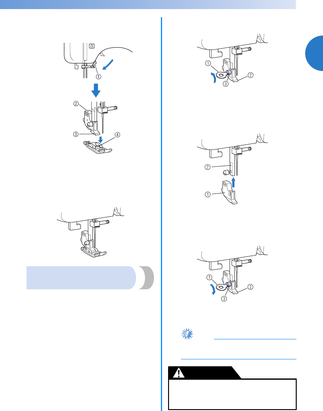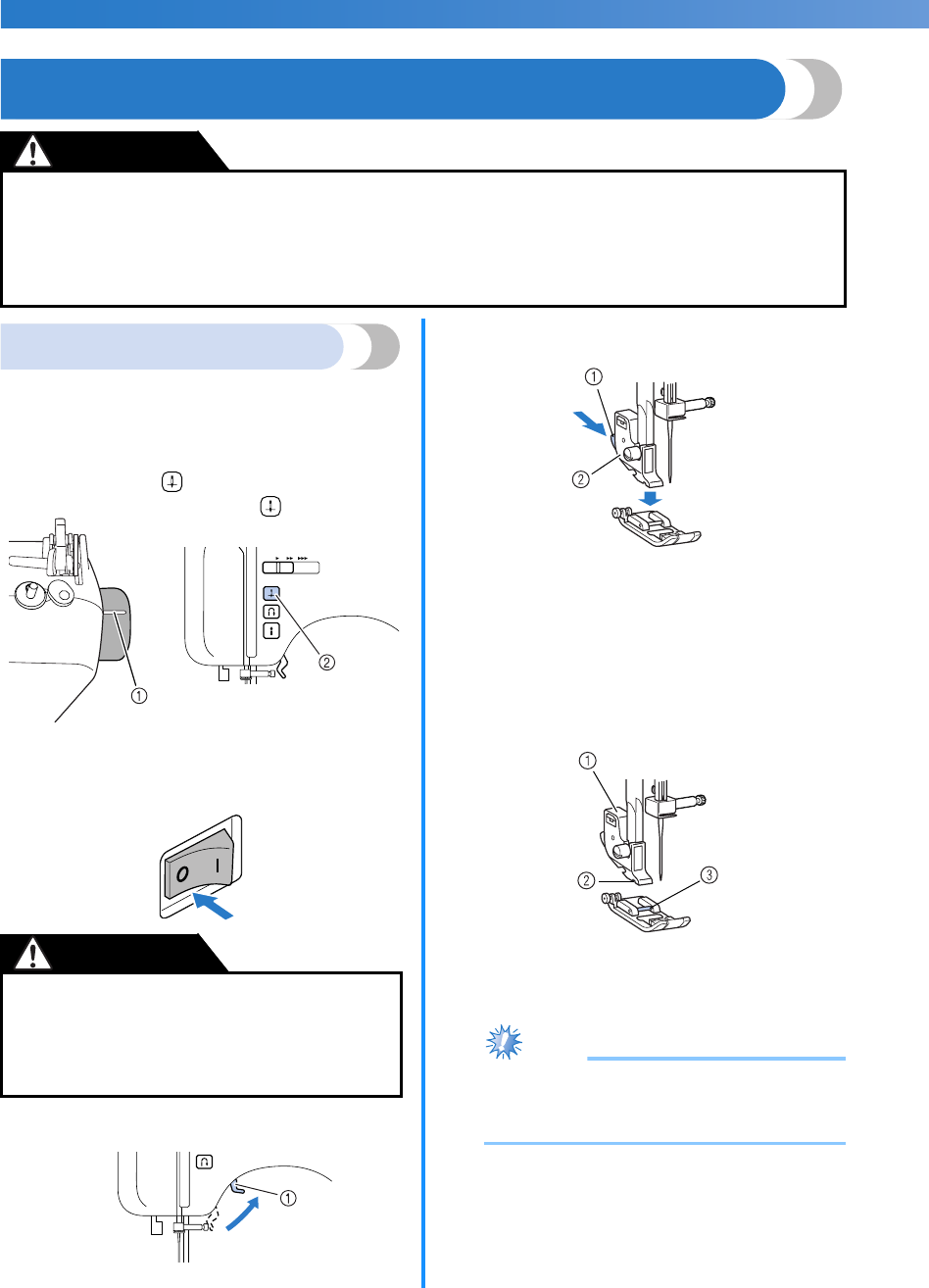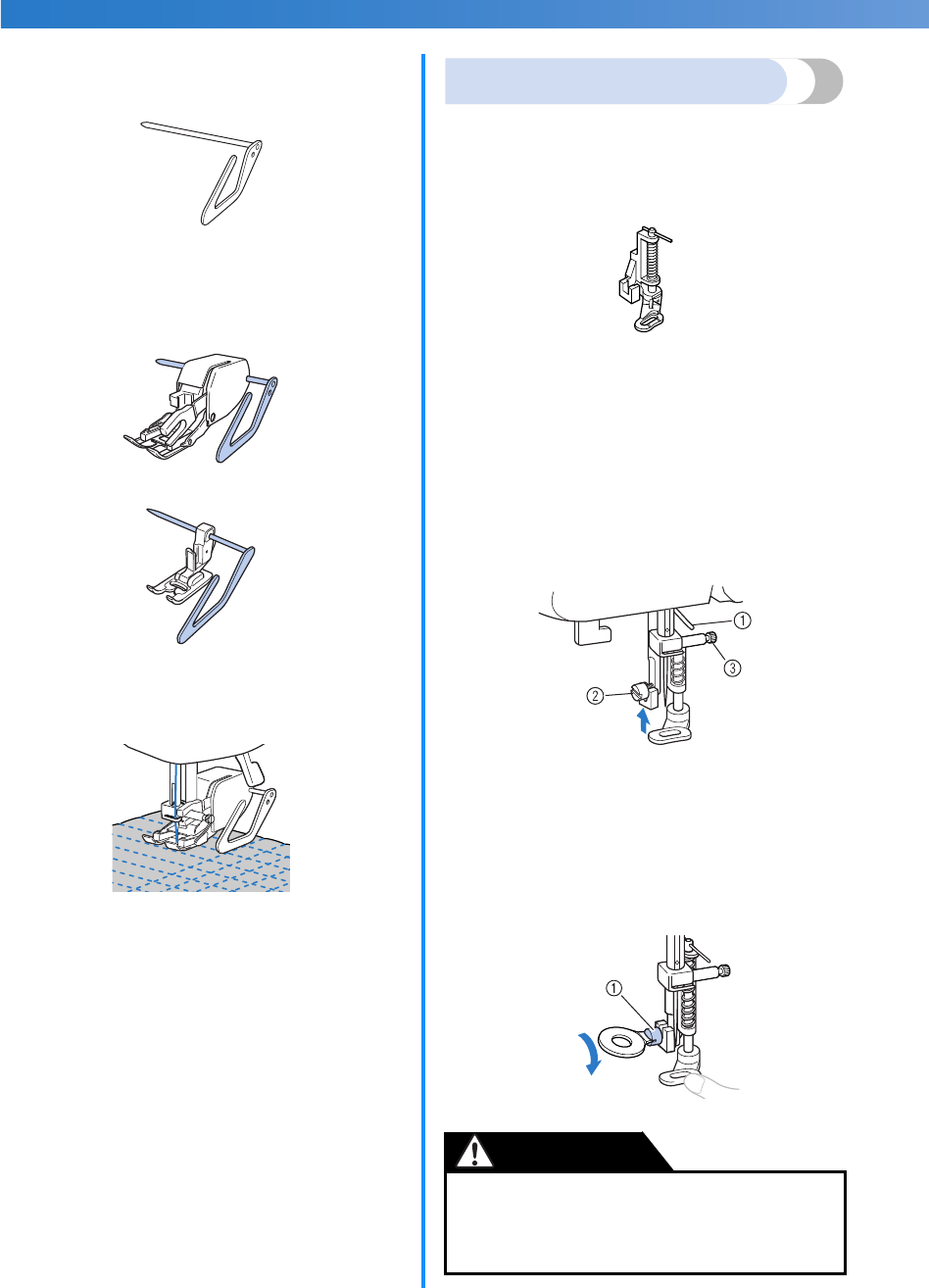 • Always consult the operation manual when replacing or installing any assemblies, the presser feet,