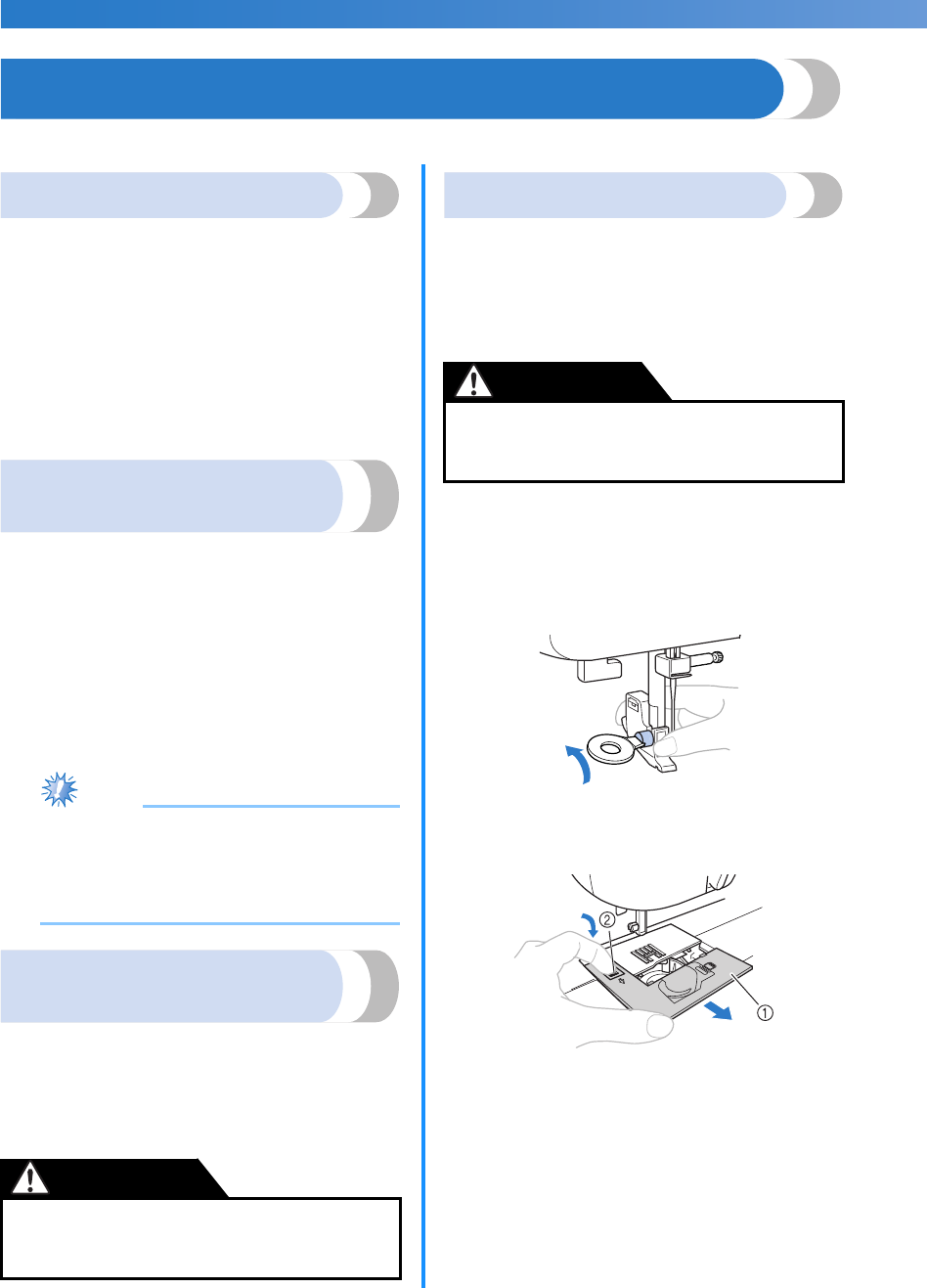 •Do not use a damaged or incorrect needle plate, as it could cause the needle to break.