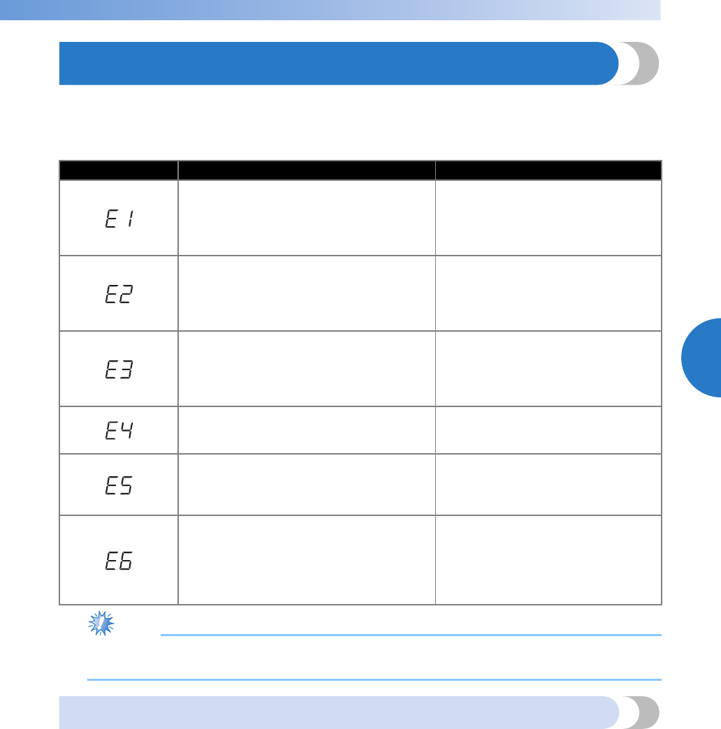 • In the event a malfunction occurs or adjustment is required, first follow the troubleshooting table