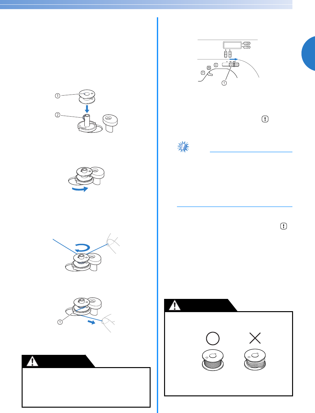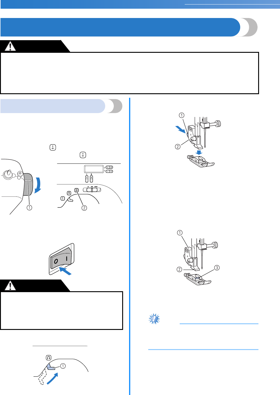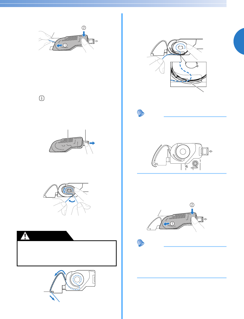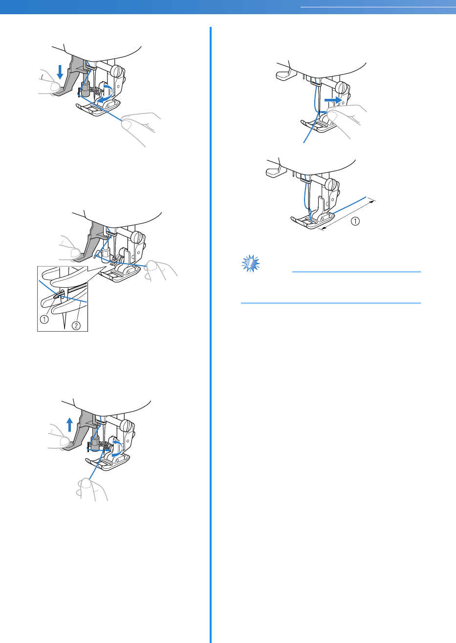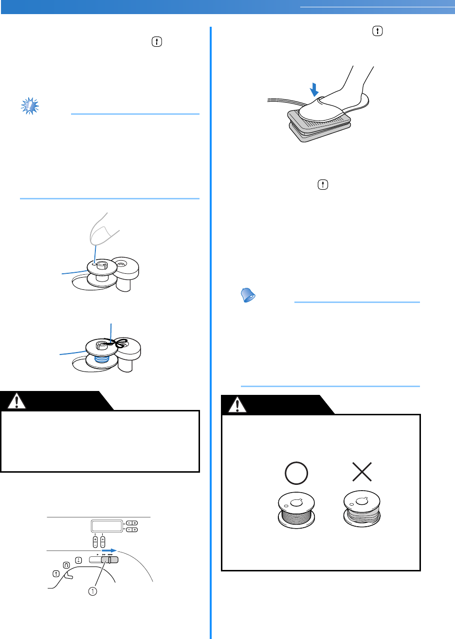 1. Be sure to keep your eye on the needle while sewing. Do not touch the hand wheel, thread take-