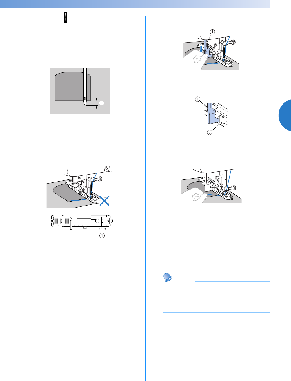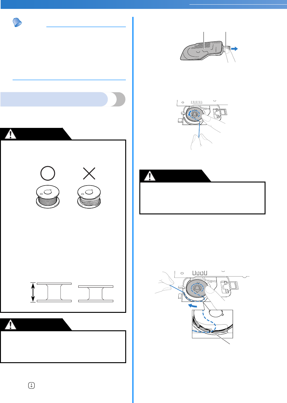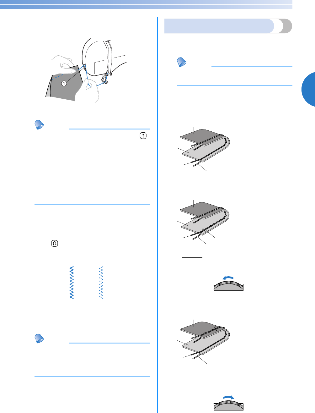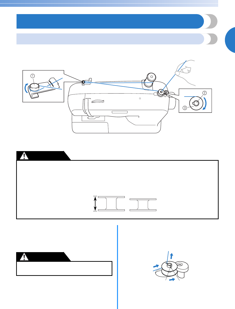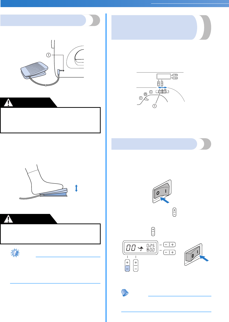 1. Be sure to keep your eye on the needle while sewing. Do not touch the hand wheel, thread take-