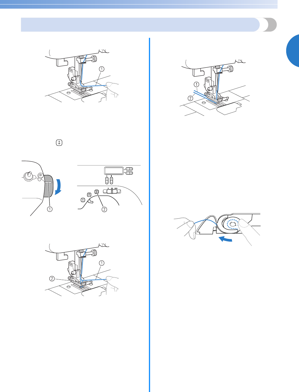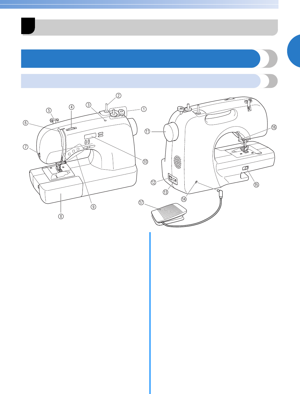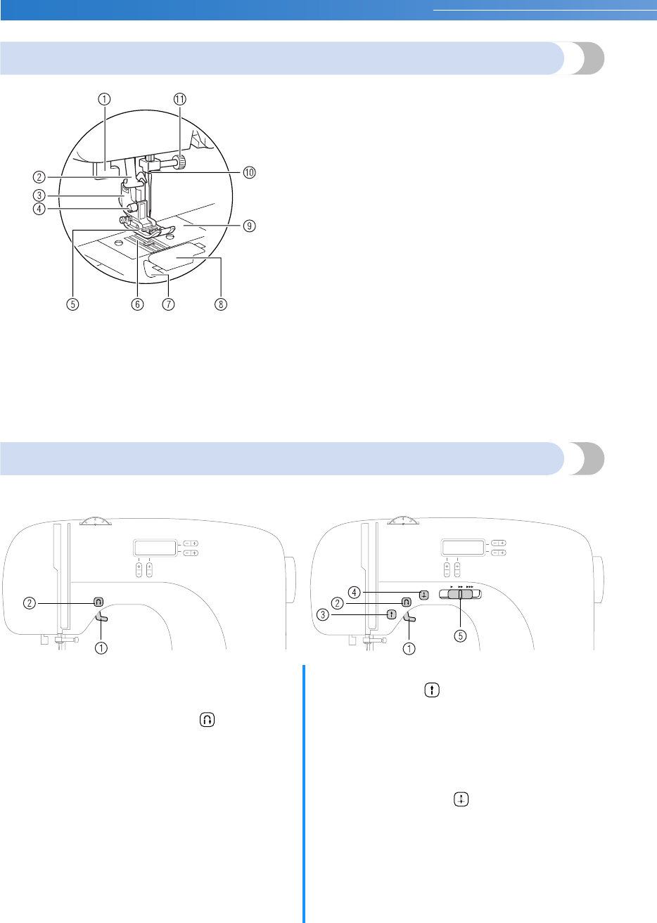 area, such as threading needle, changing needle, threading bobbin, or changing presser foot, and
