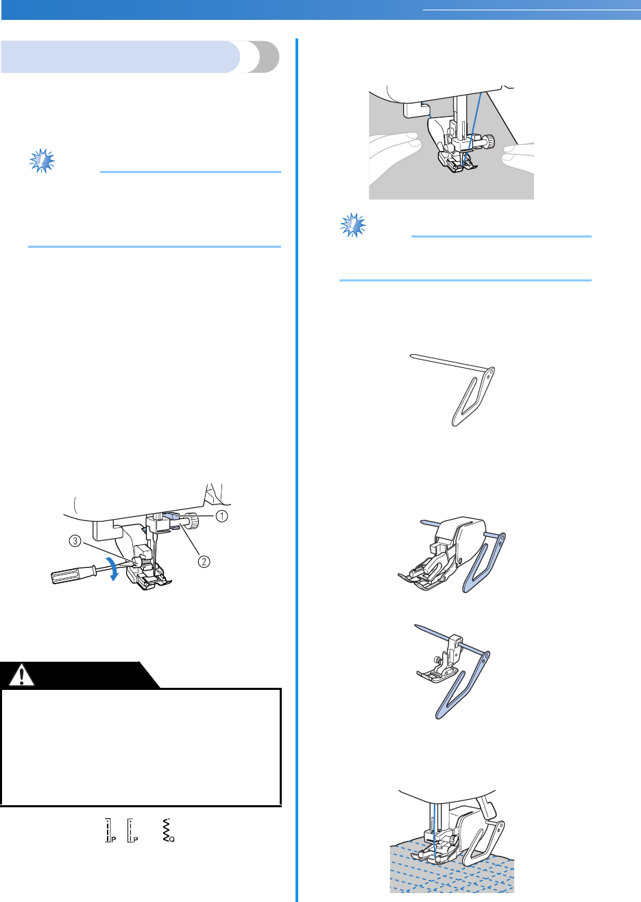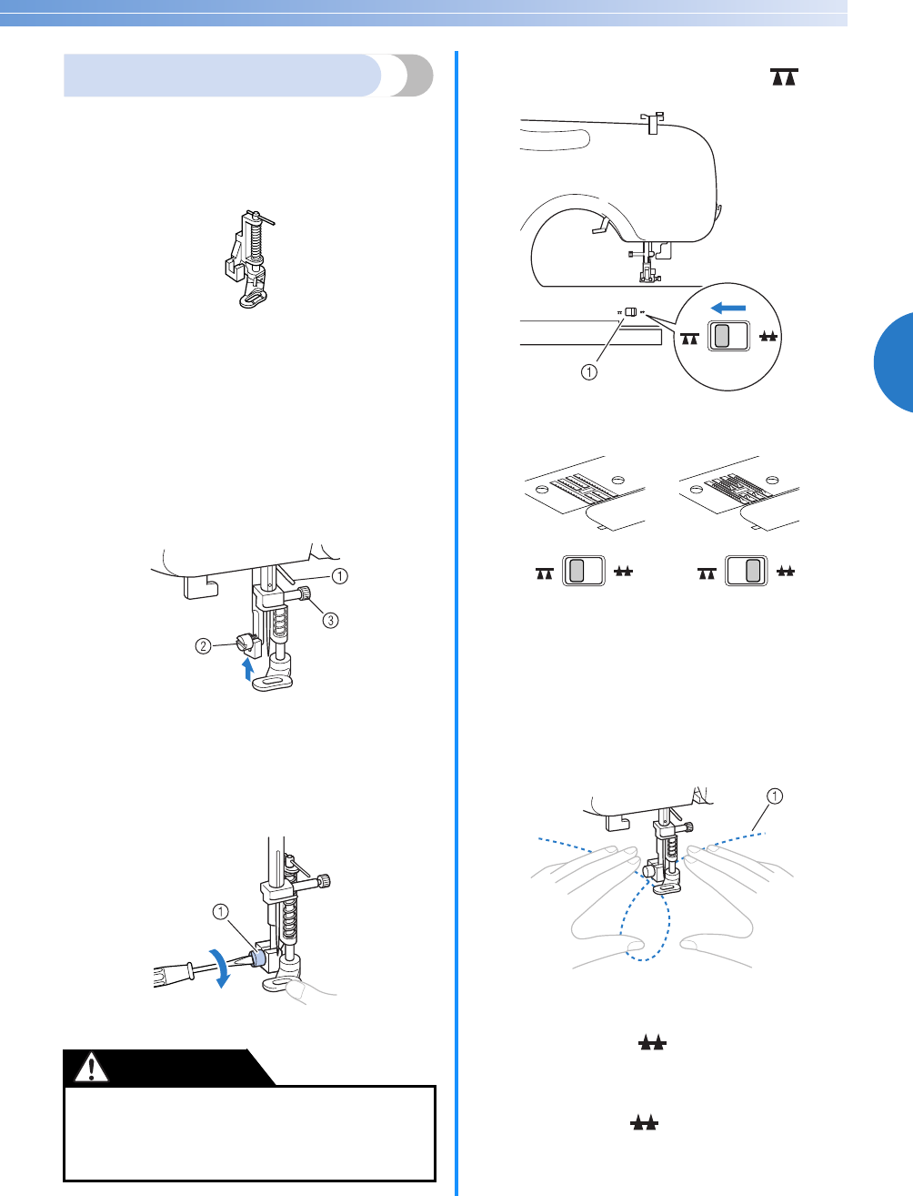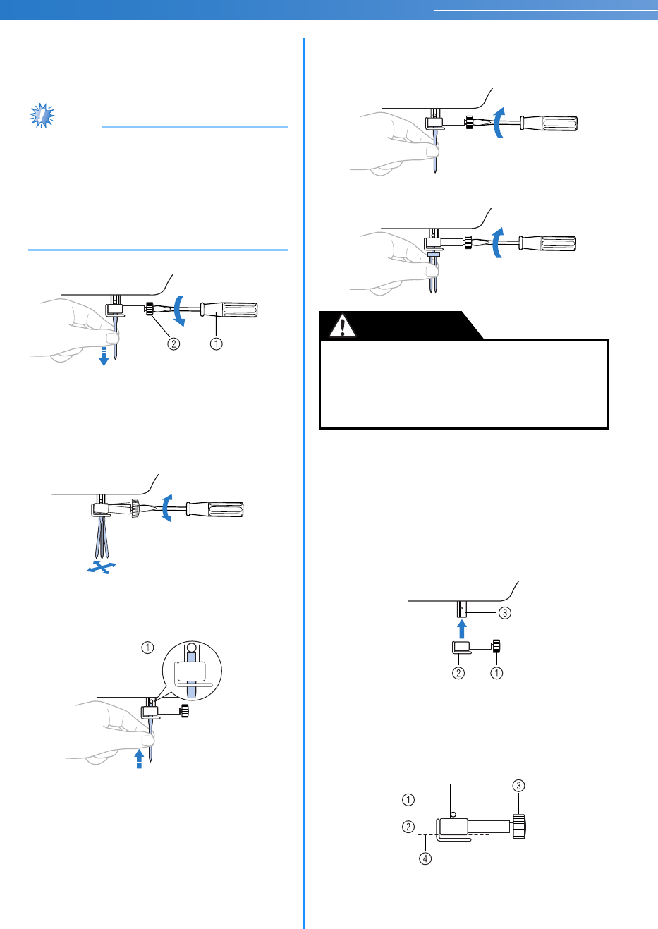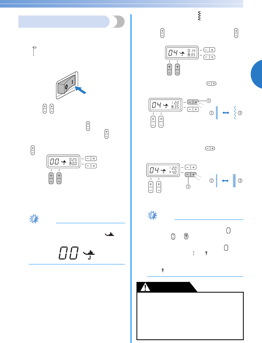 14. Switch the machine to the symbol “{” position when making any adjustments in the needle