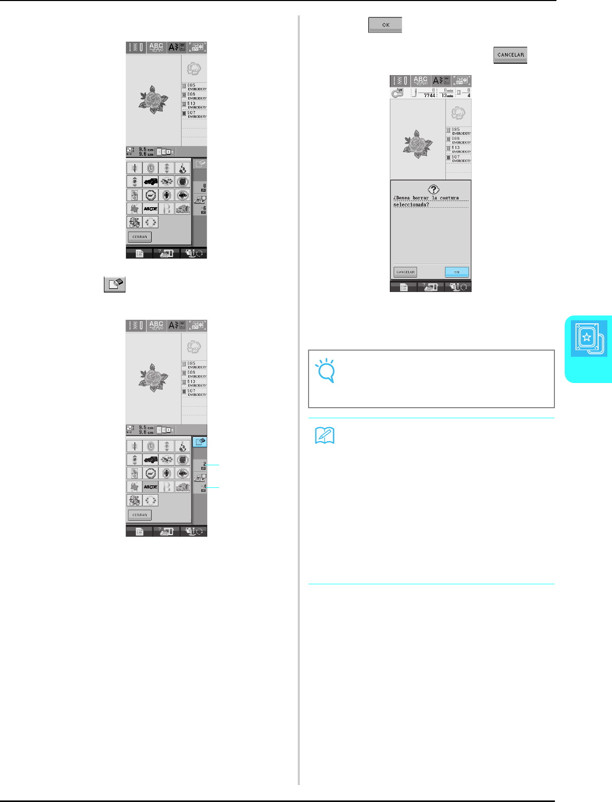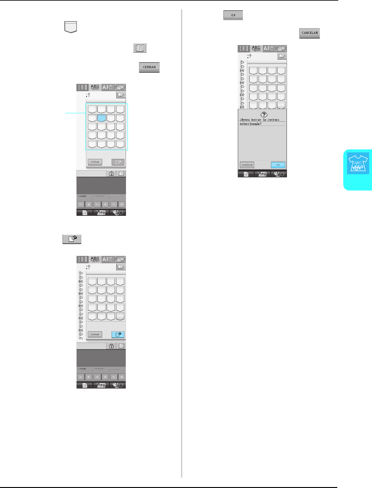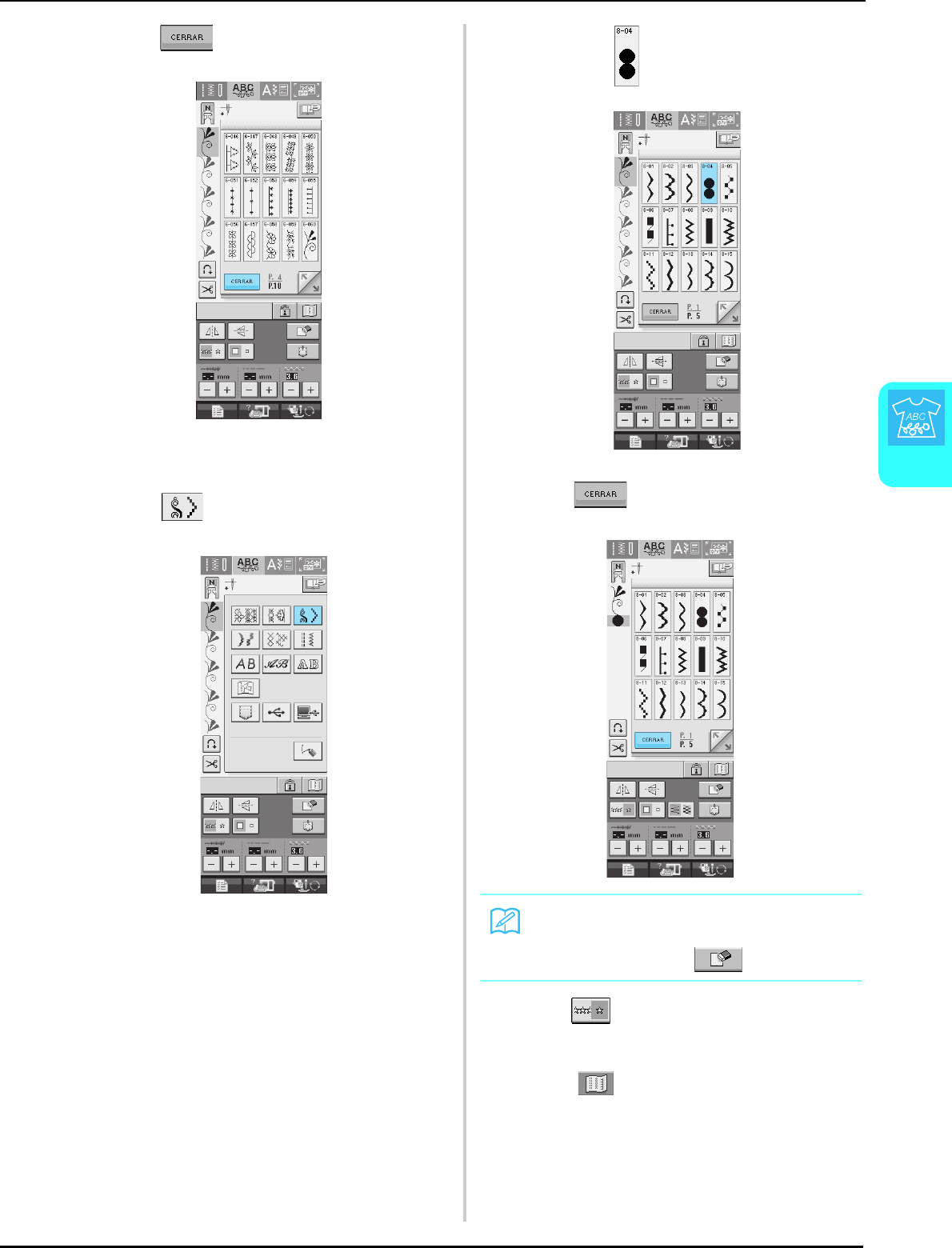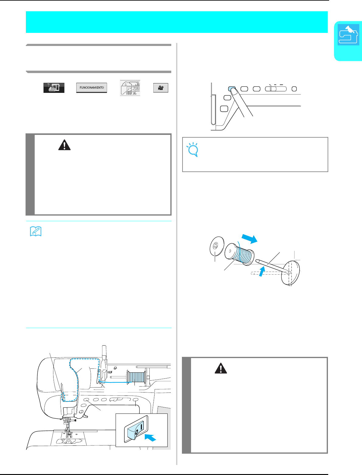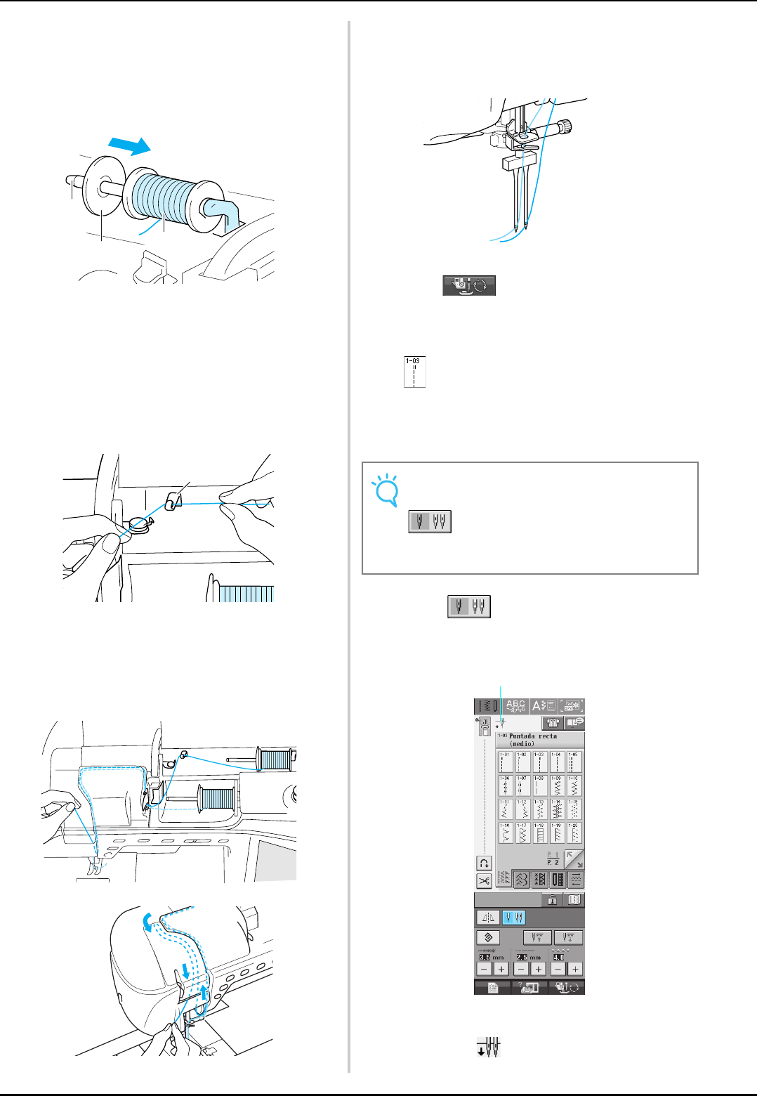 bobina, cambiar el pie prensatela, etc., coloque la máquina en la posición con el símbolo “ ”.