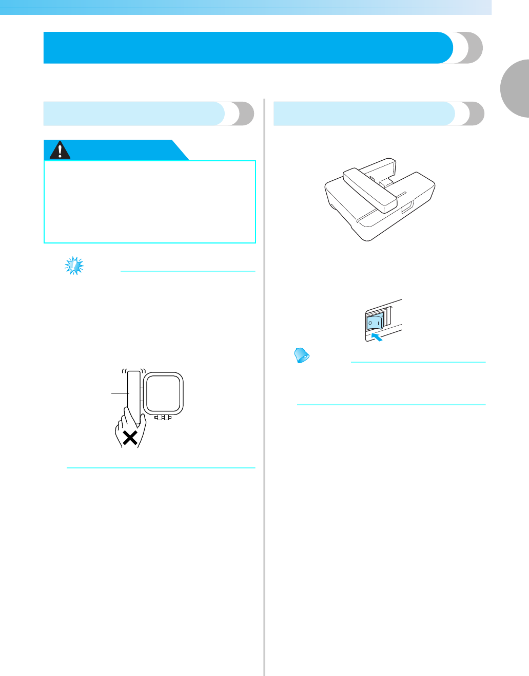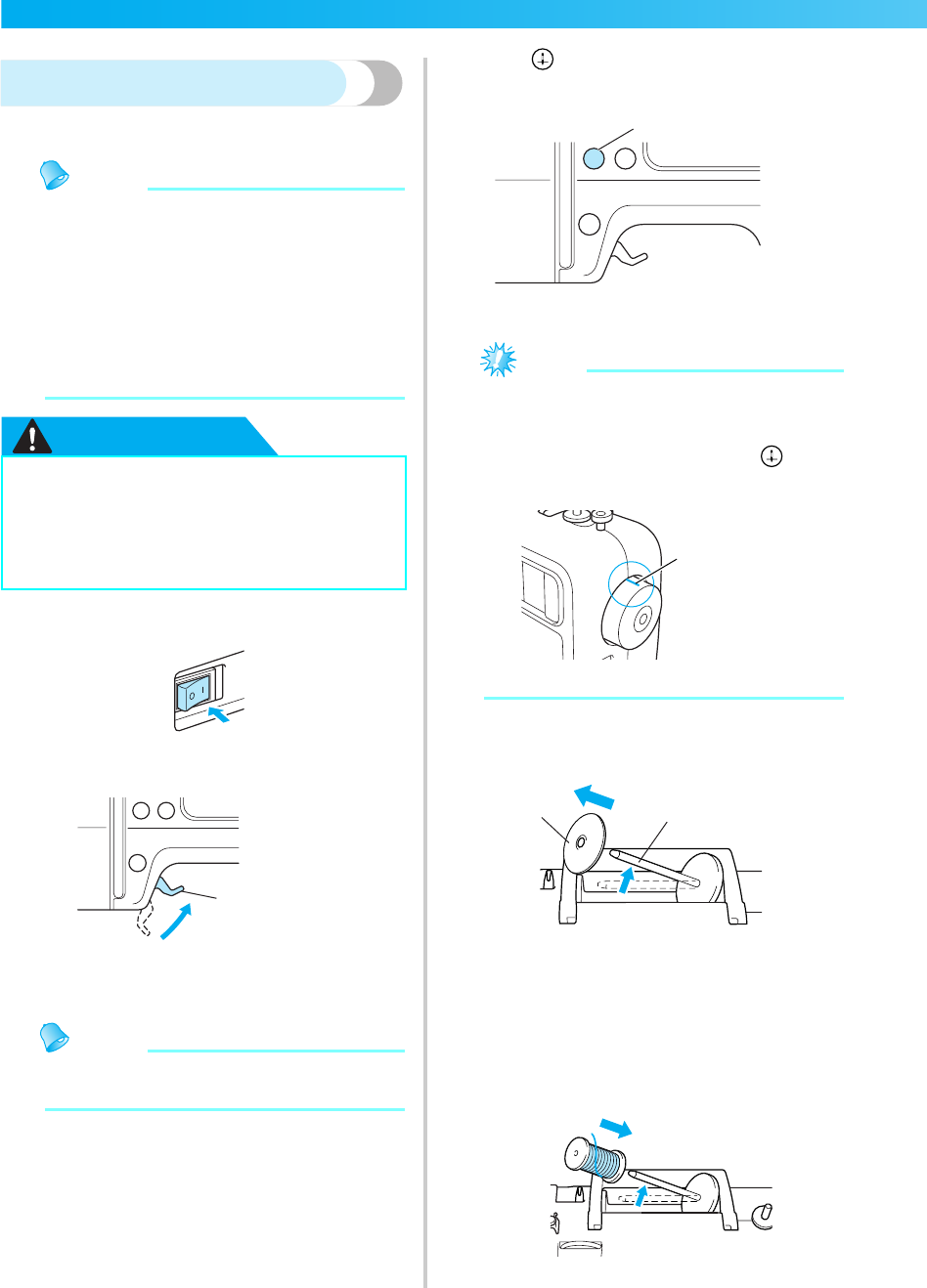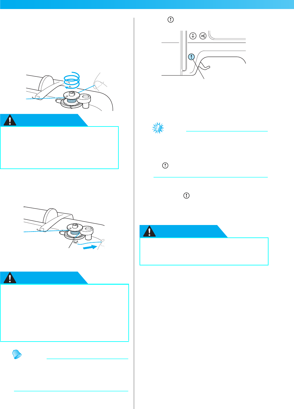 • Keep fingers away from all moving parts. Special care is required around the machine needle.