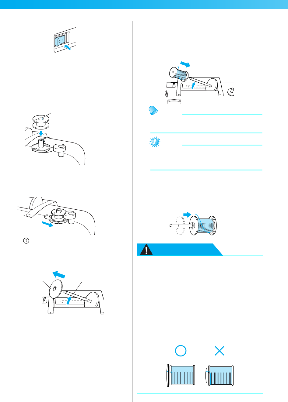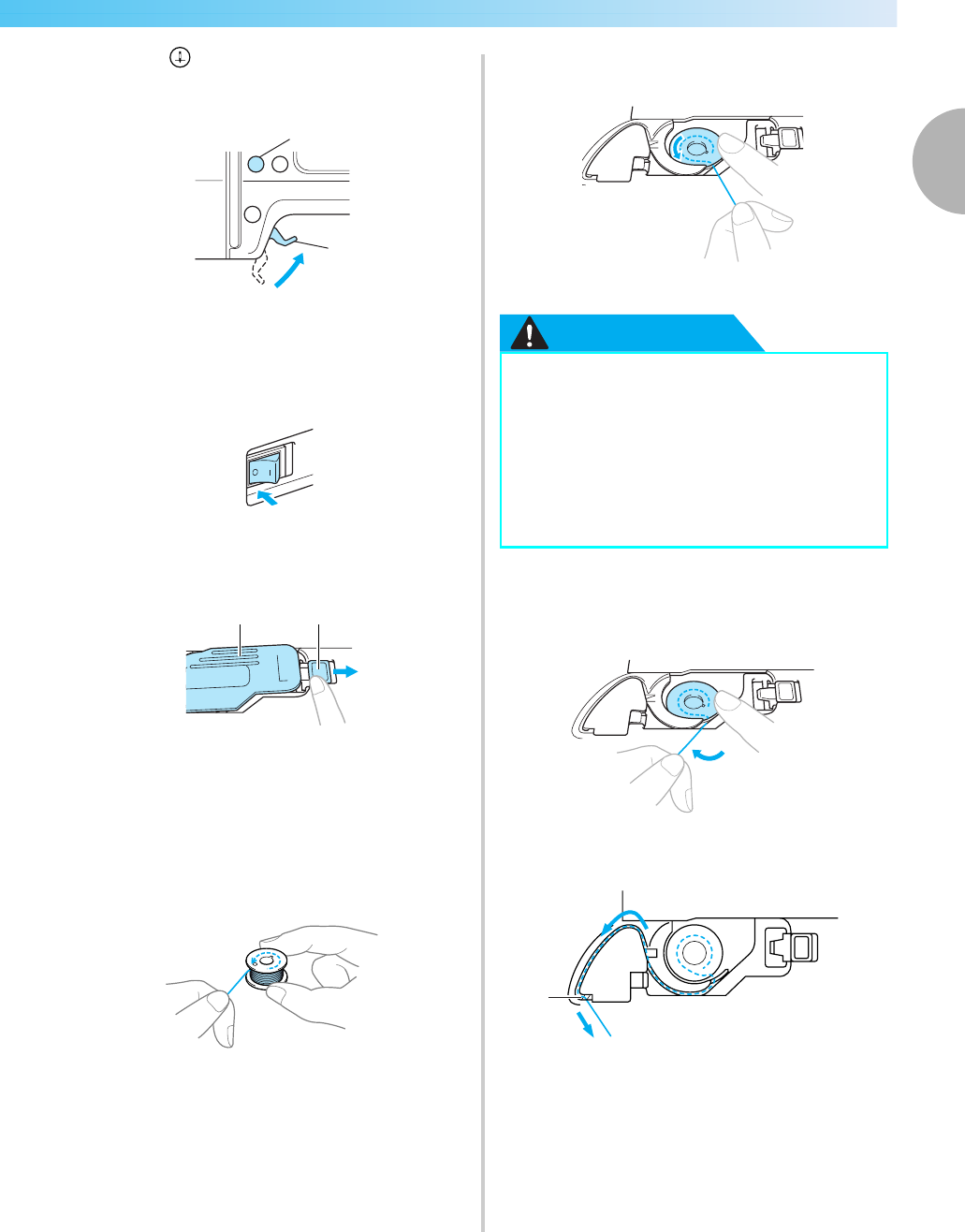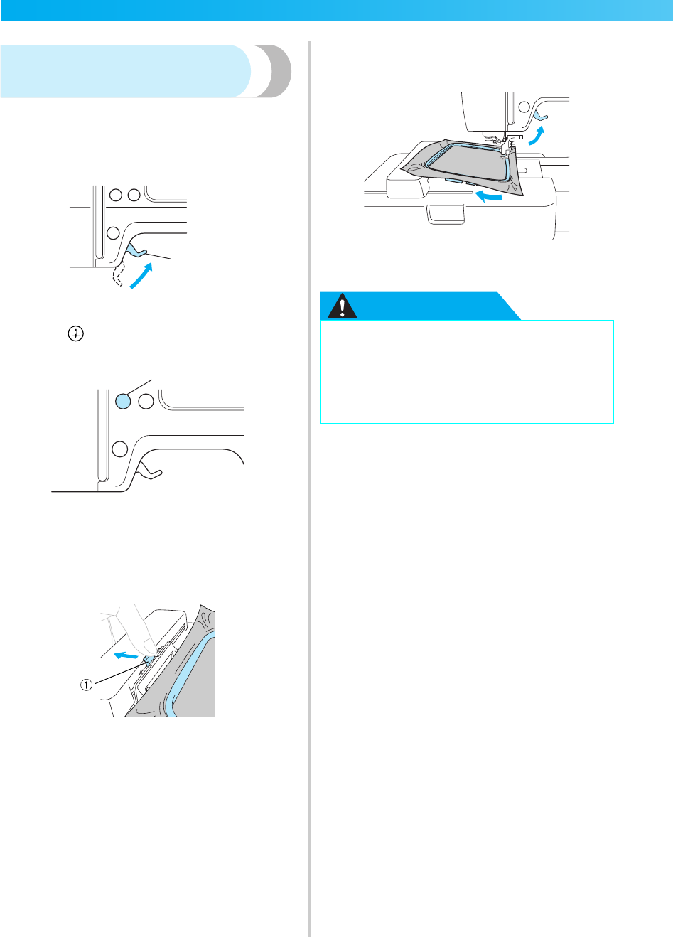 • Keep fingers away from all moving parts. Special care is required around the machine needle.