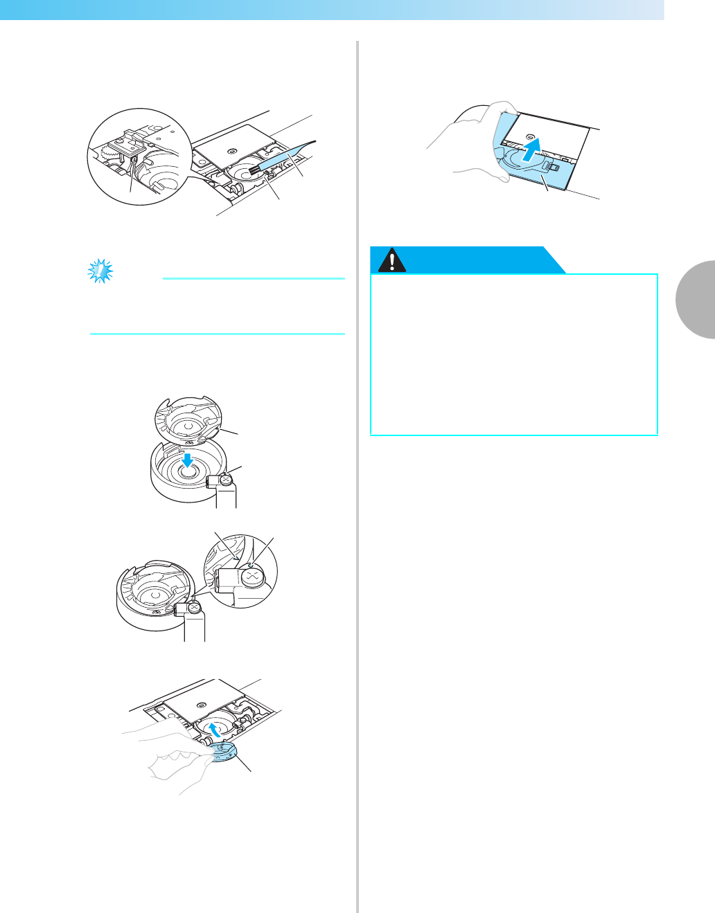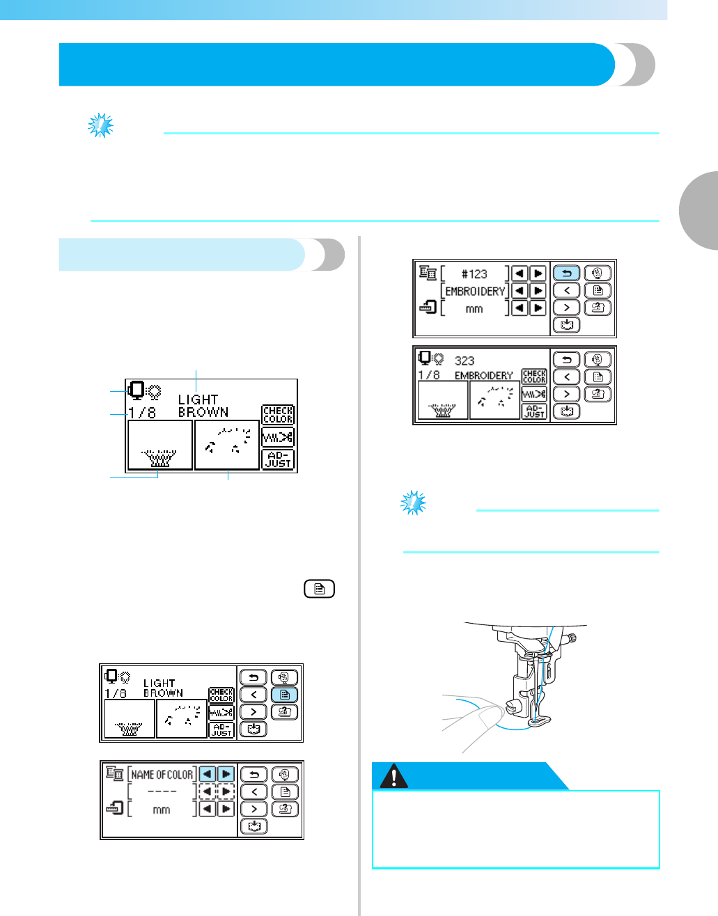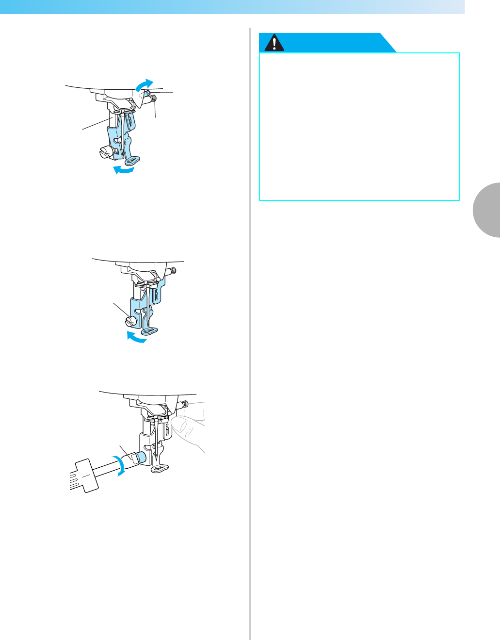 • Always consult the operation manual when replacing or installing any assemblies, needle, or