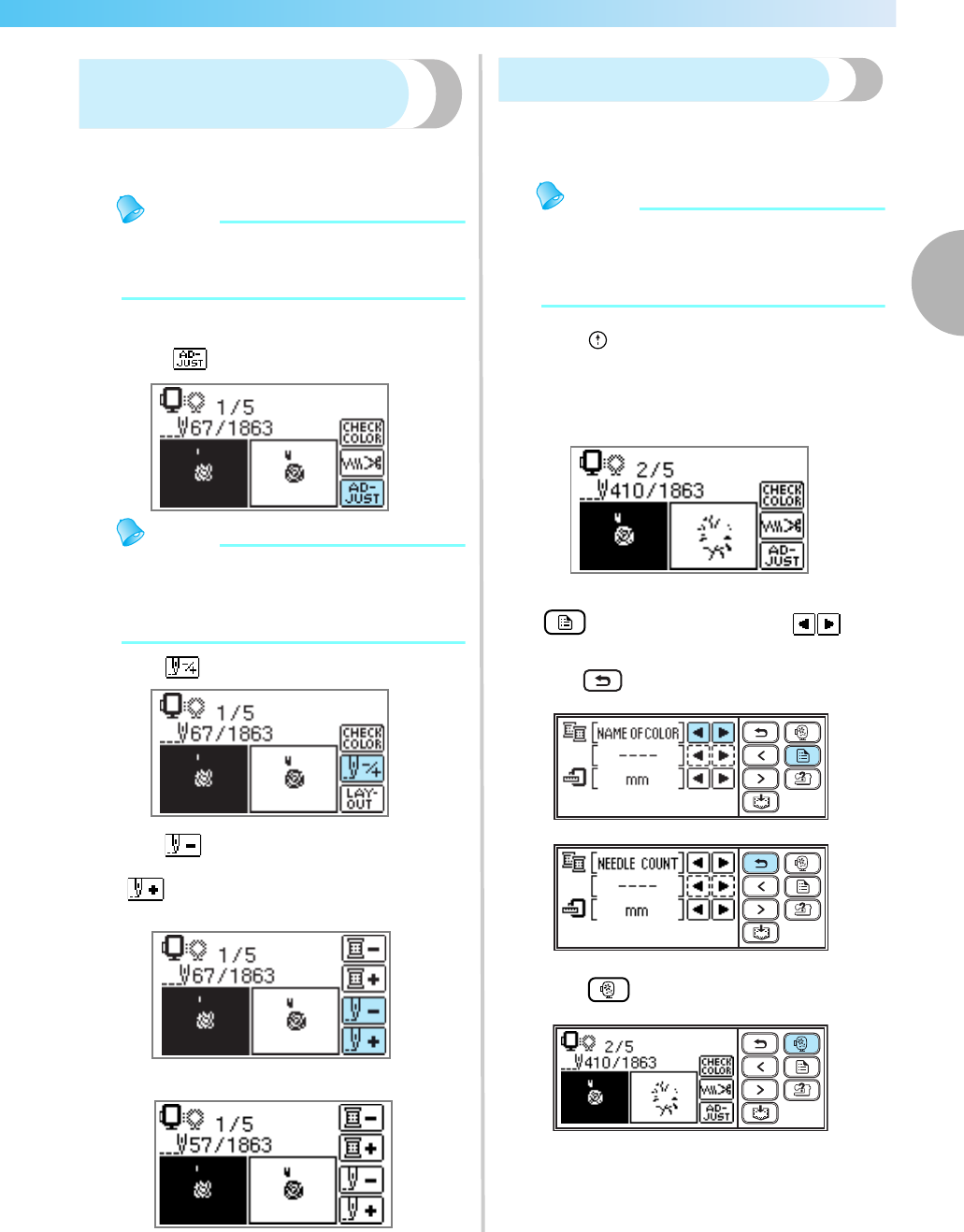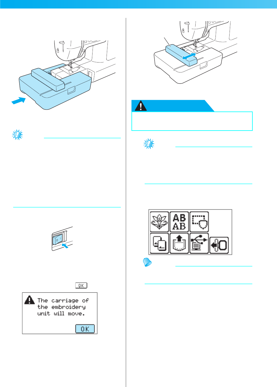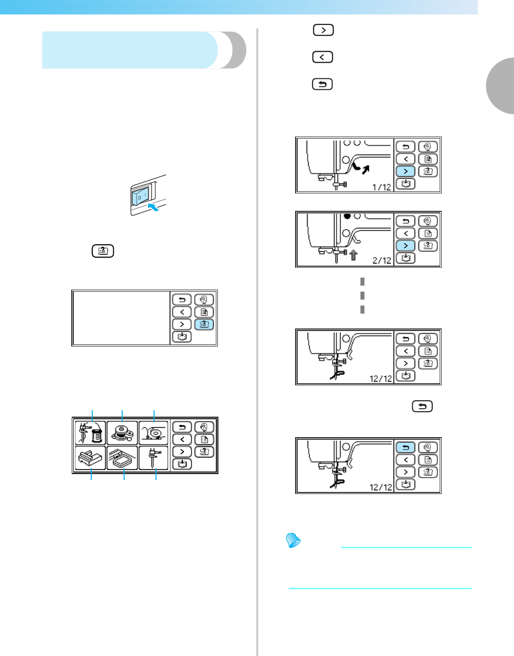• Always consult the operation manual when replacing or installing any assemblies, needle, or