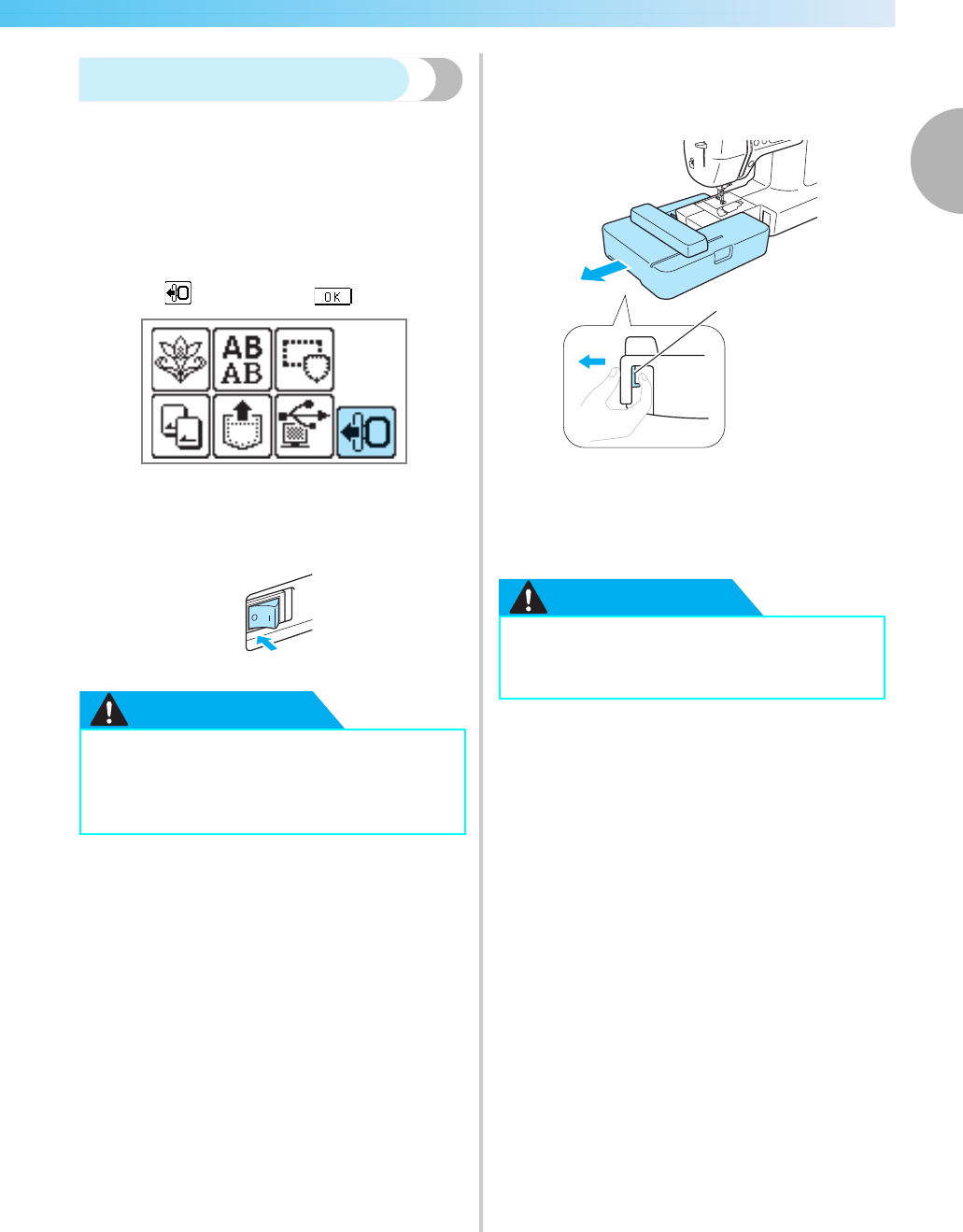 power cord or garment being embroidered may ignite, resulting in fire or an electric shock.