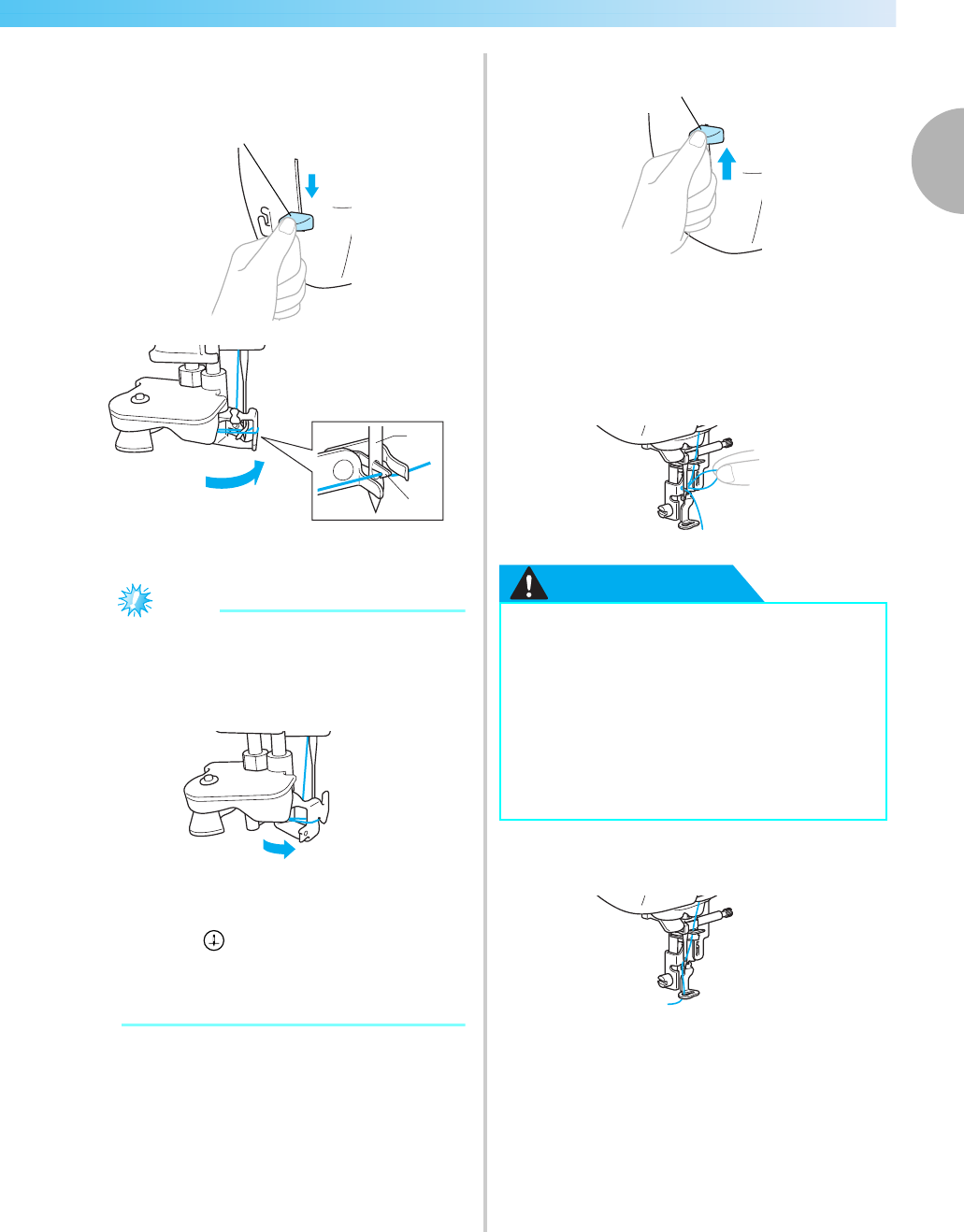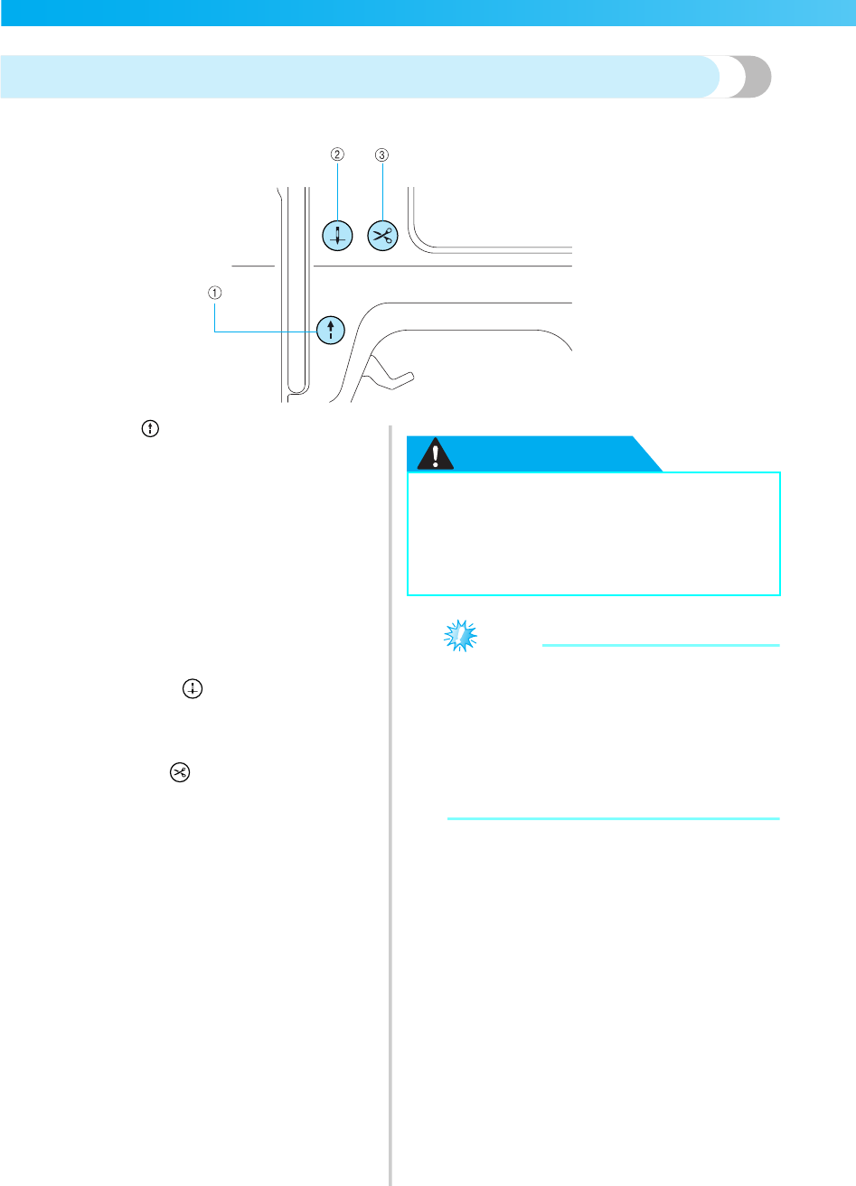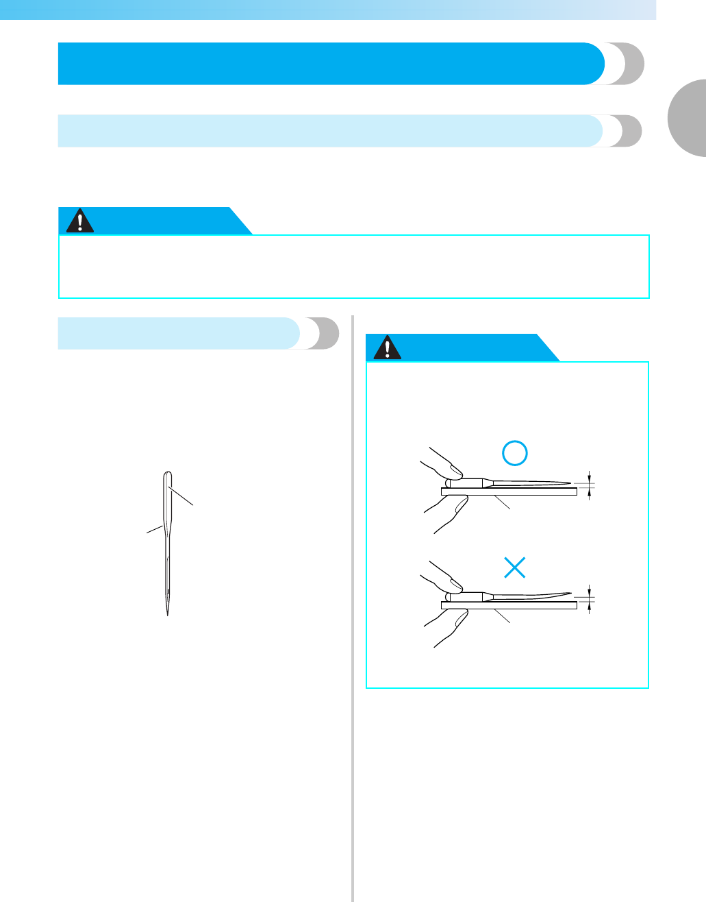 •Always pay close attention to the needle. Do not use bent or damaged needles.