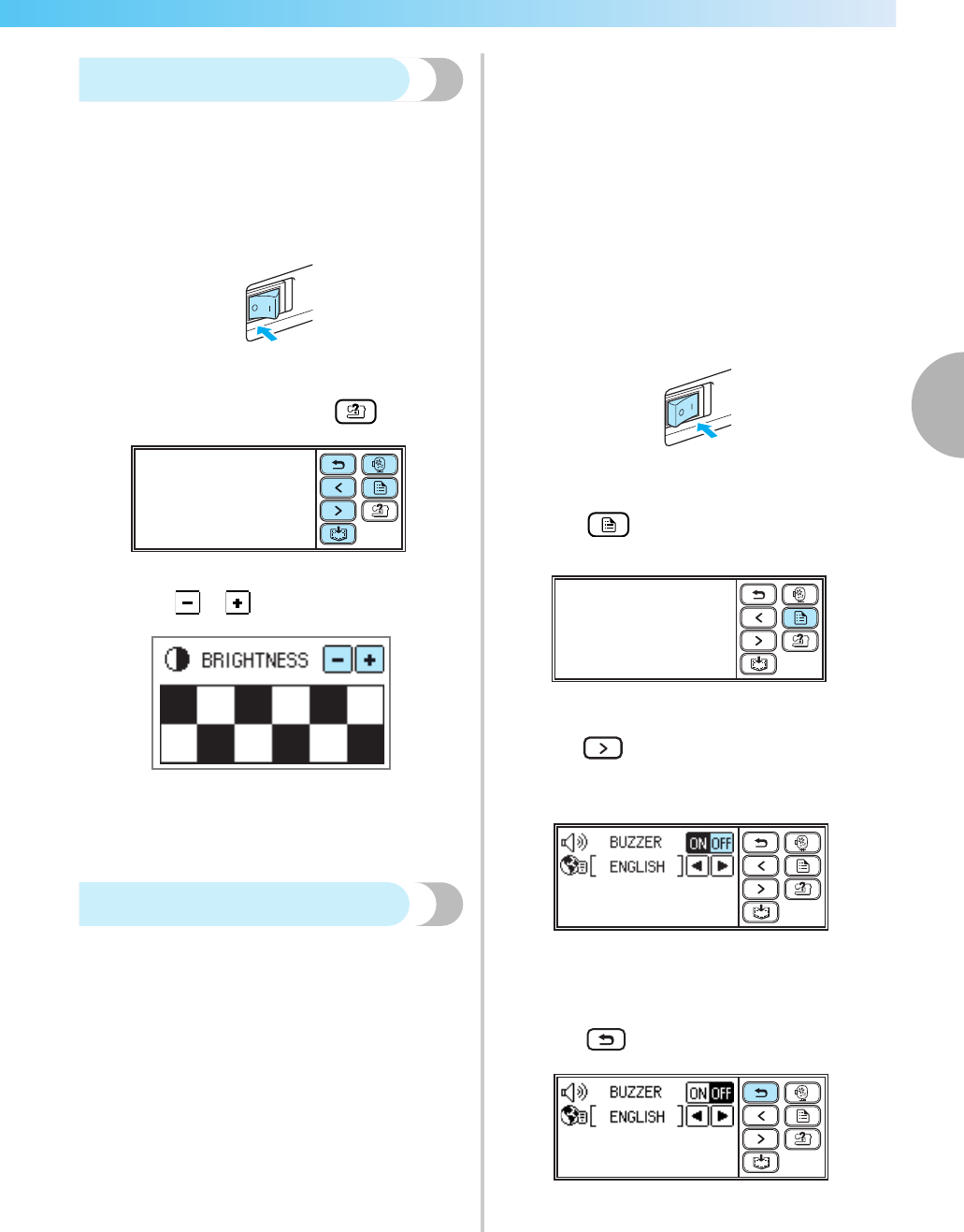 • Switch the machine to the symbol “O” position to turn it off when making any adjustments in the