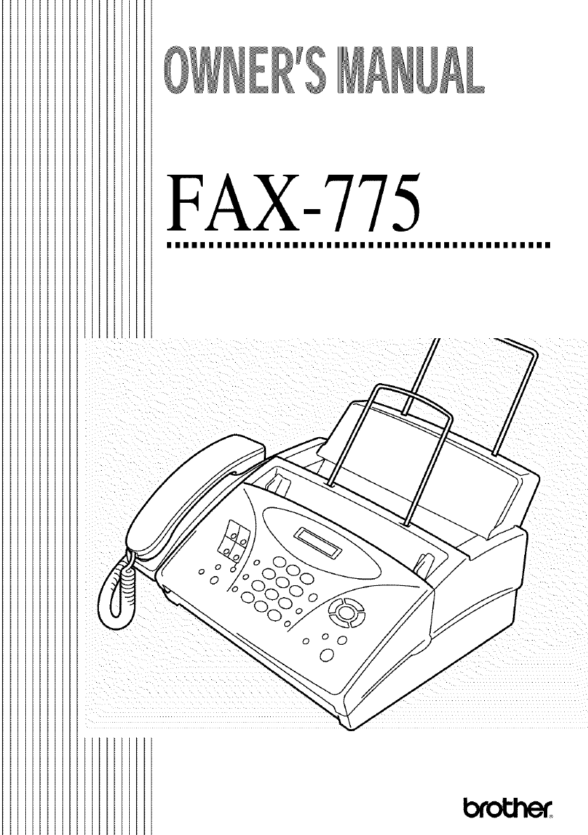 User Manual: Brother FAX775 FAX775 BROTHER FAX MACHINE - Manuals and Guides View the owners manual for your BROTHER FAX MACHINE #FAX775. Home:Computer & Office Equipment Parts:Brother Parts:Brother FAX MACHINE Manual
