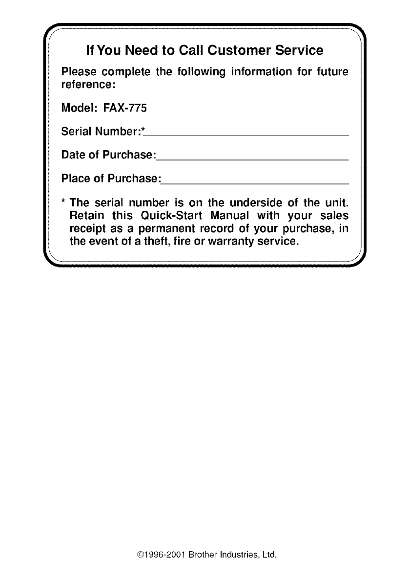 Brother FAX775 User Manual FAX MACHINE Manuals And Guides L0702012