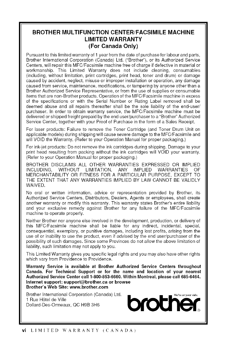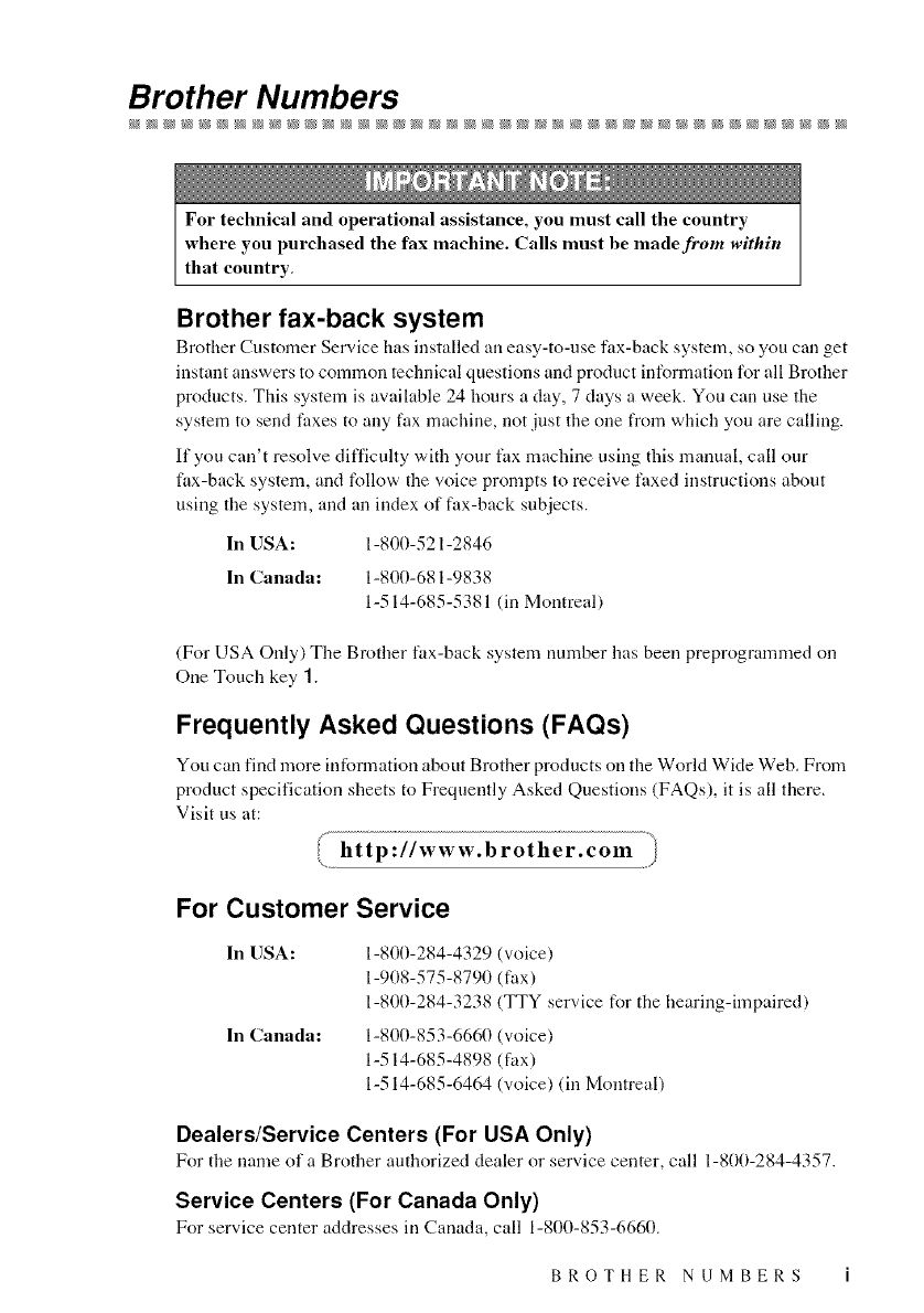 For the name of a Brother authorized dealer or service center, call 1-800-284-4357.