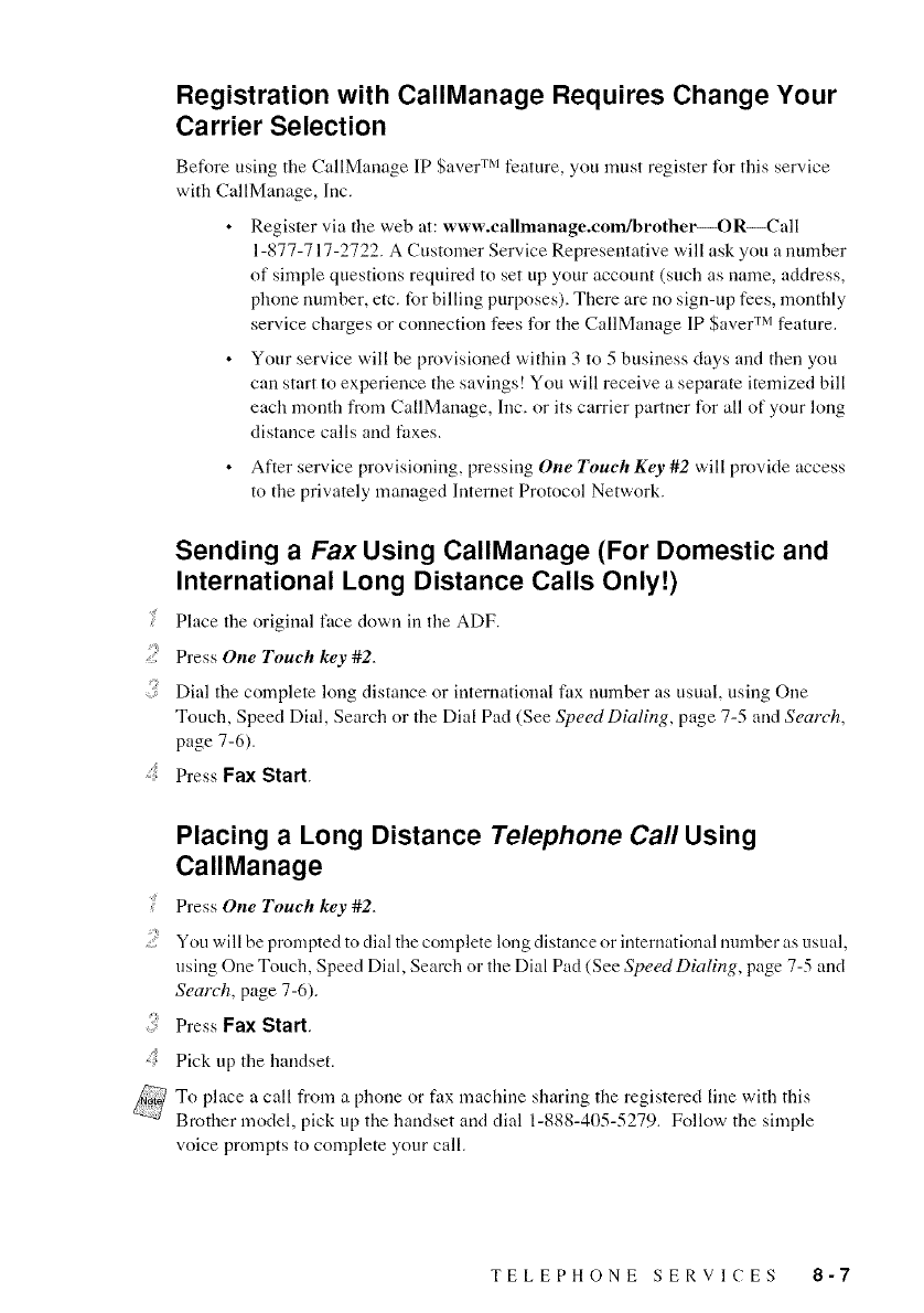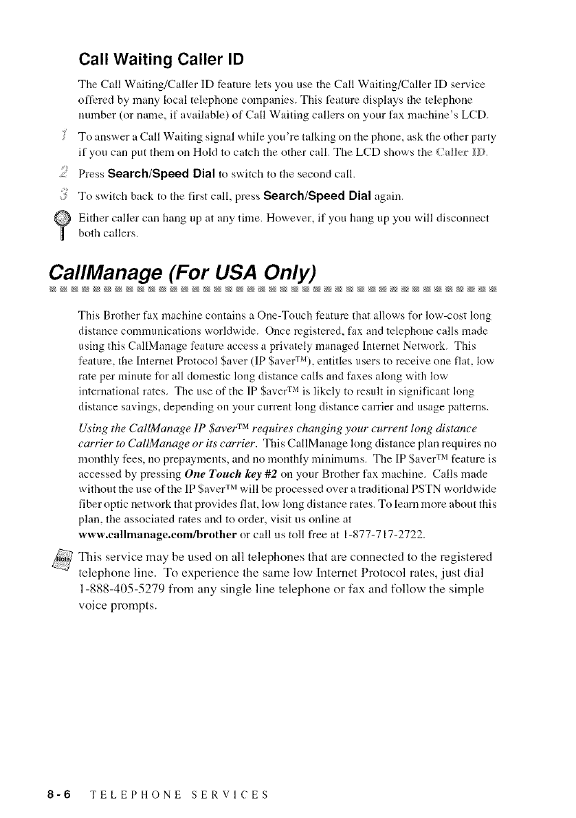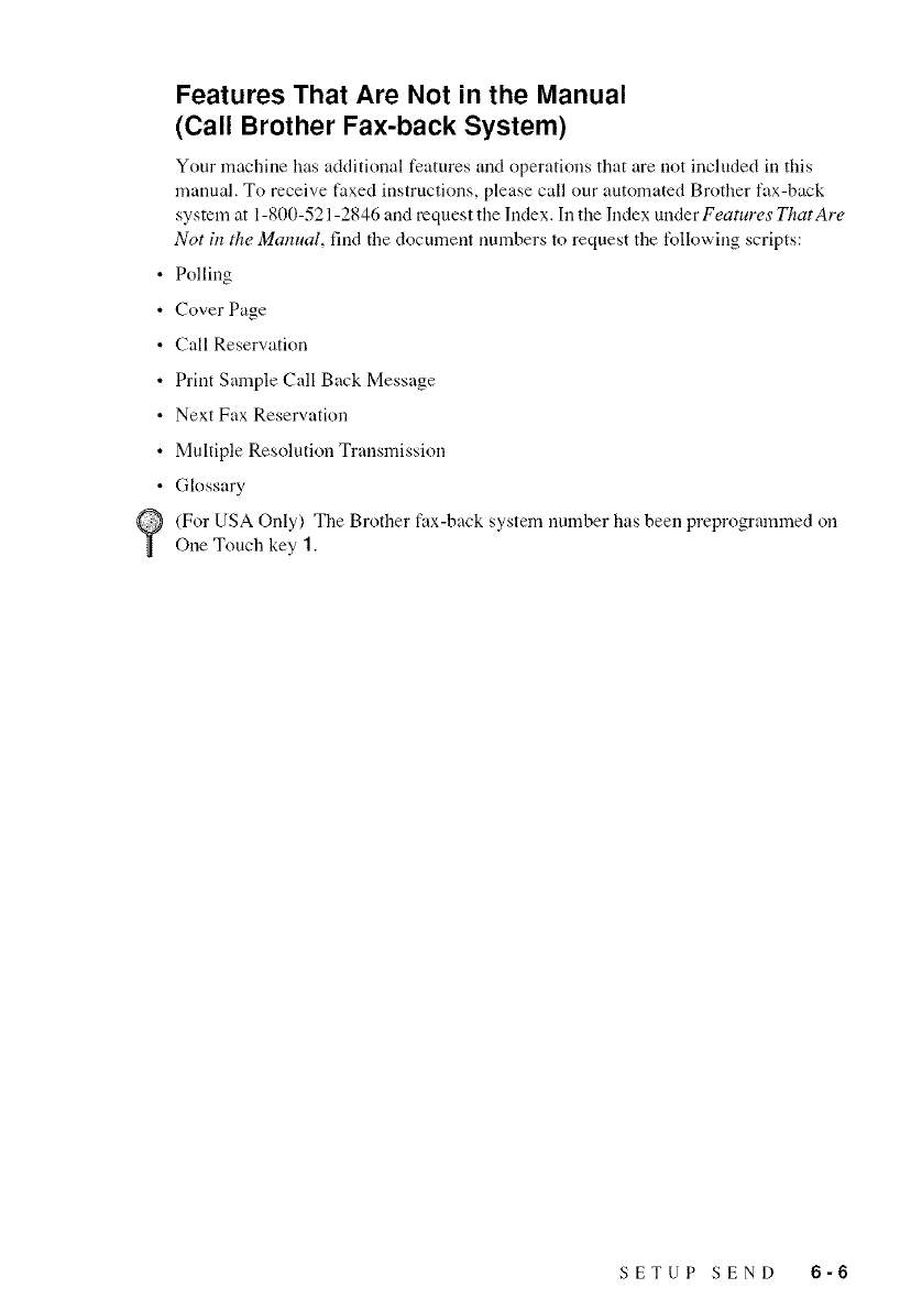 (For USA Only) The Brother lax-back system number has been preprogrammed on