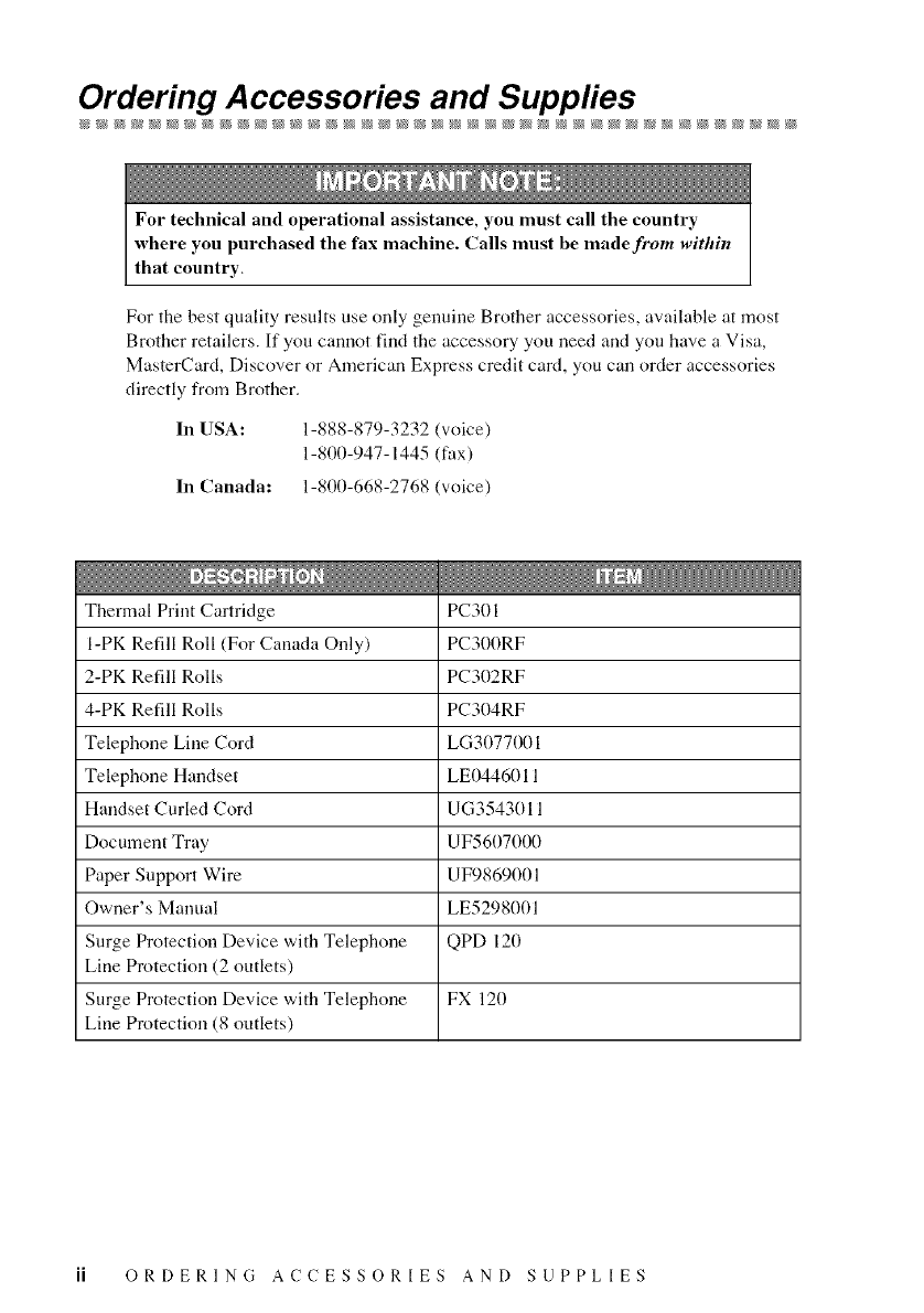 ii ORDERING ACCESSORIES AND SUPPLIES