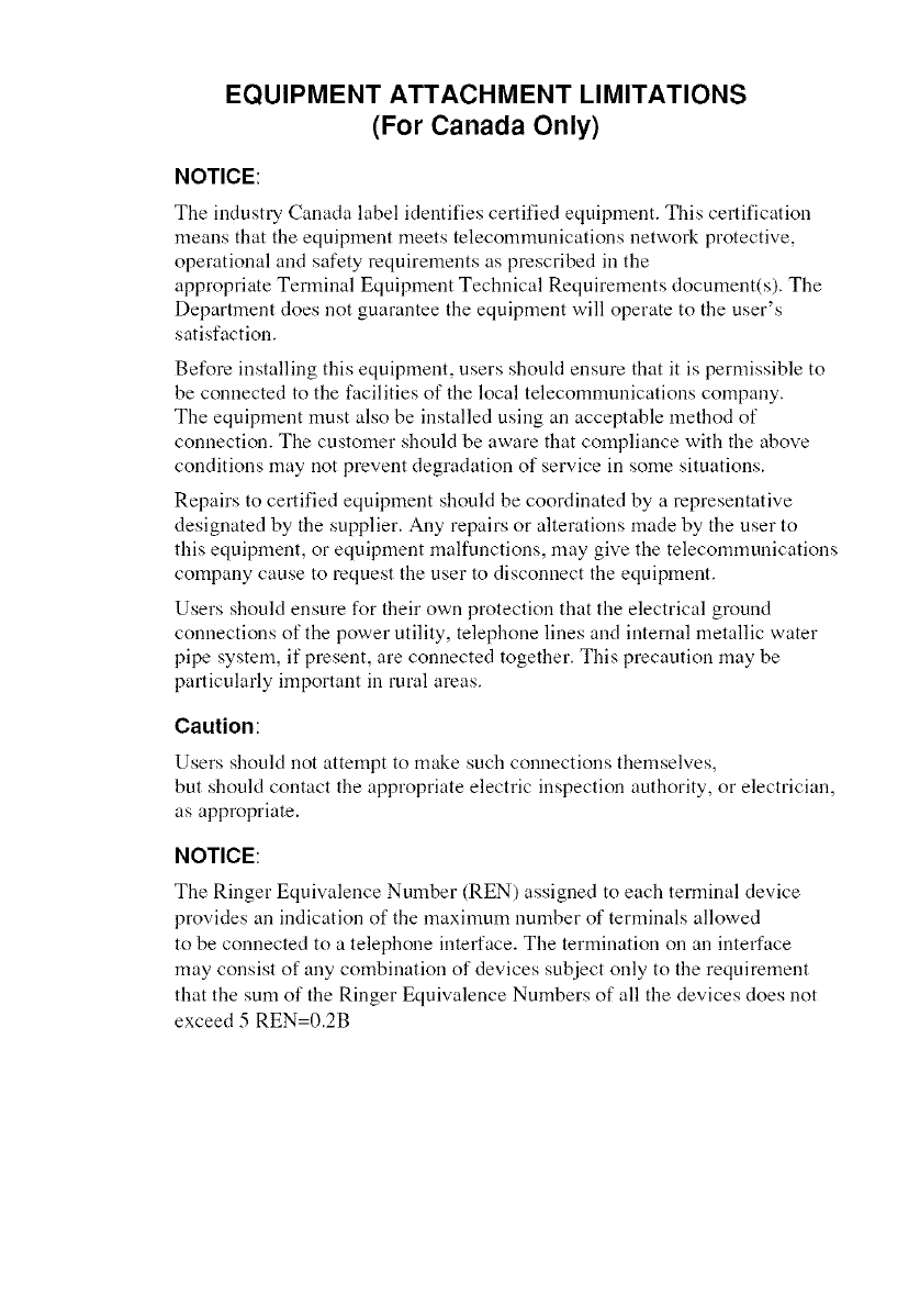 EQUIPMENT ATTACHMENT LIMITATIONS