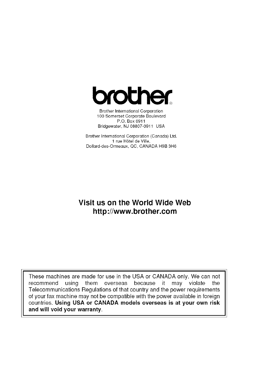 BROTHER Fax Machines Manual L0702012 BROTHER Fax Machines Owner's Manual, BROTHER Fax Machines installation guides