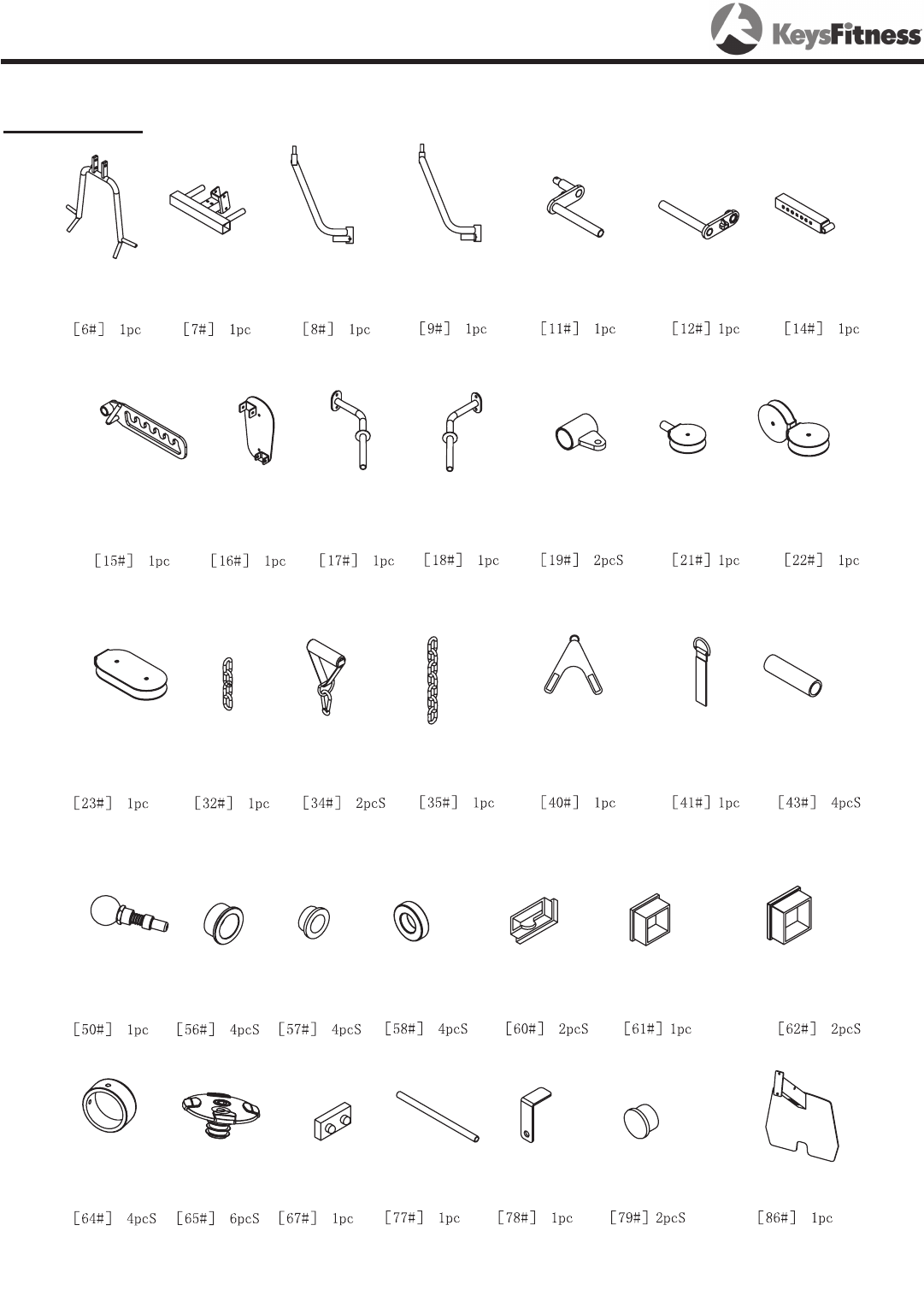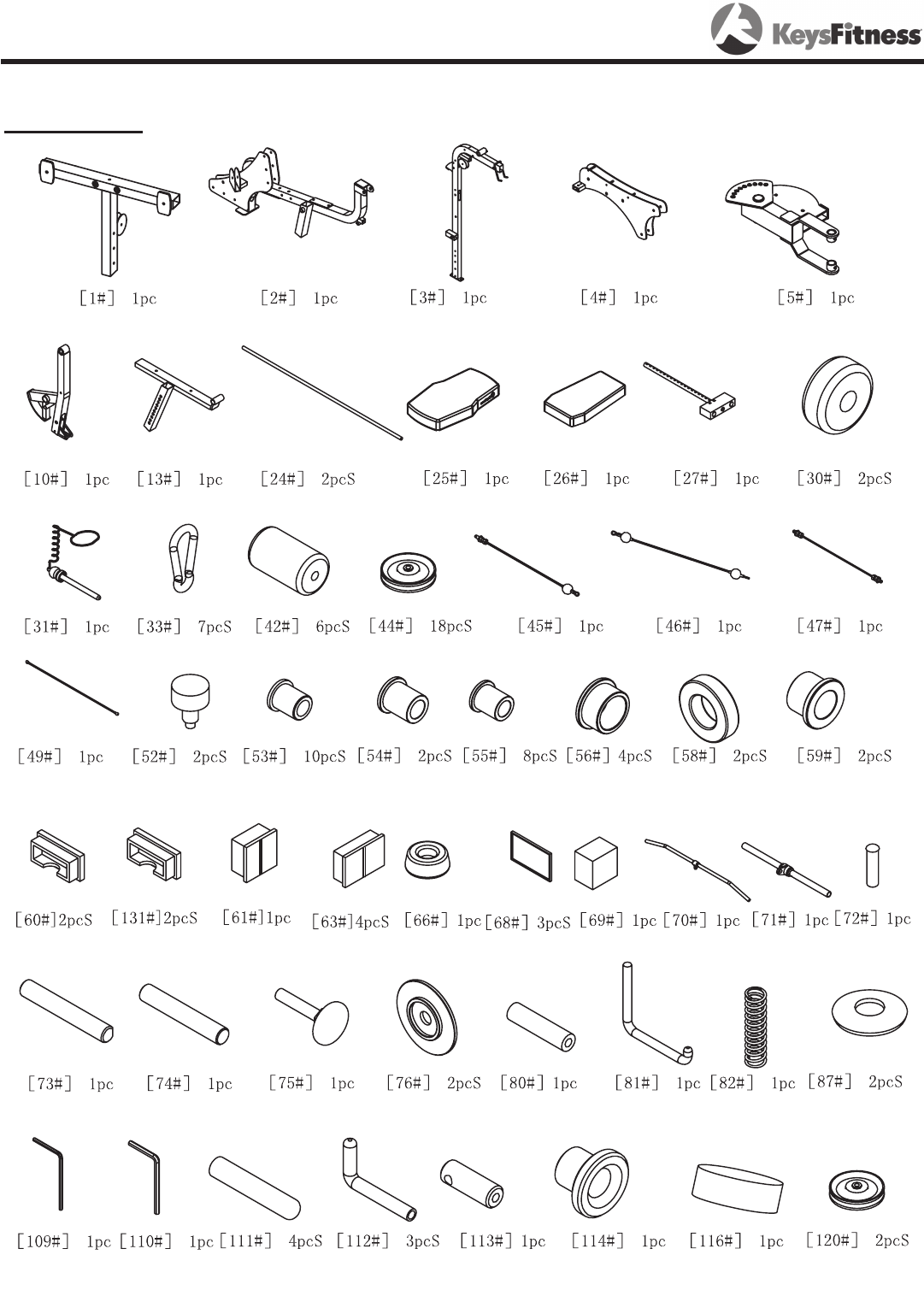 45 229-00047 CHEST PRESS CABLE KPS-1850 P45 1 109 202-00132 HEX KEY 6 1