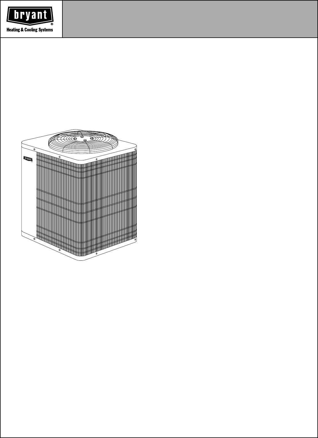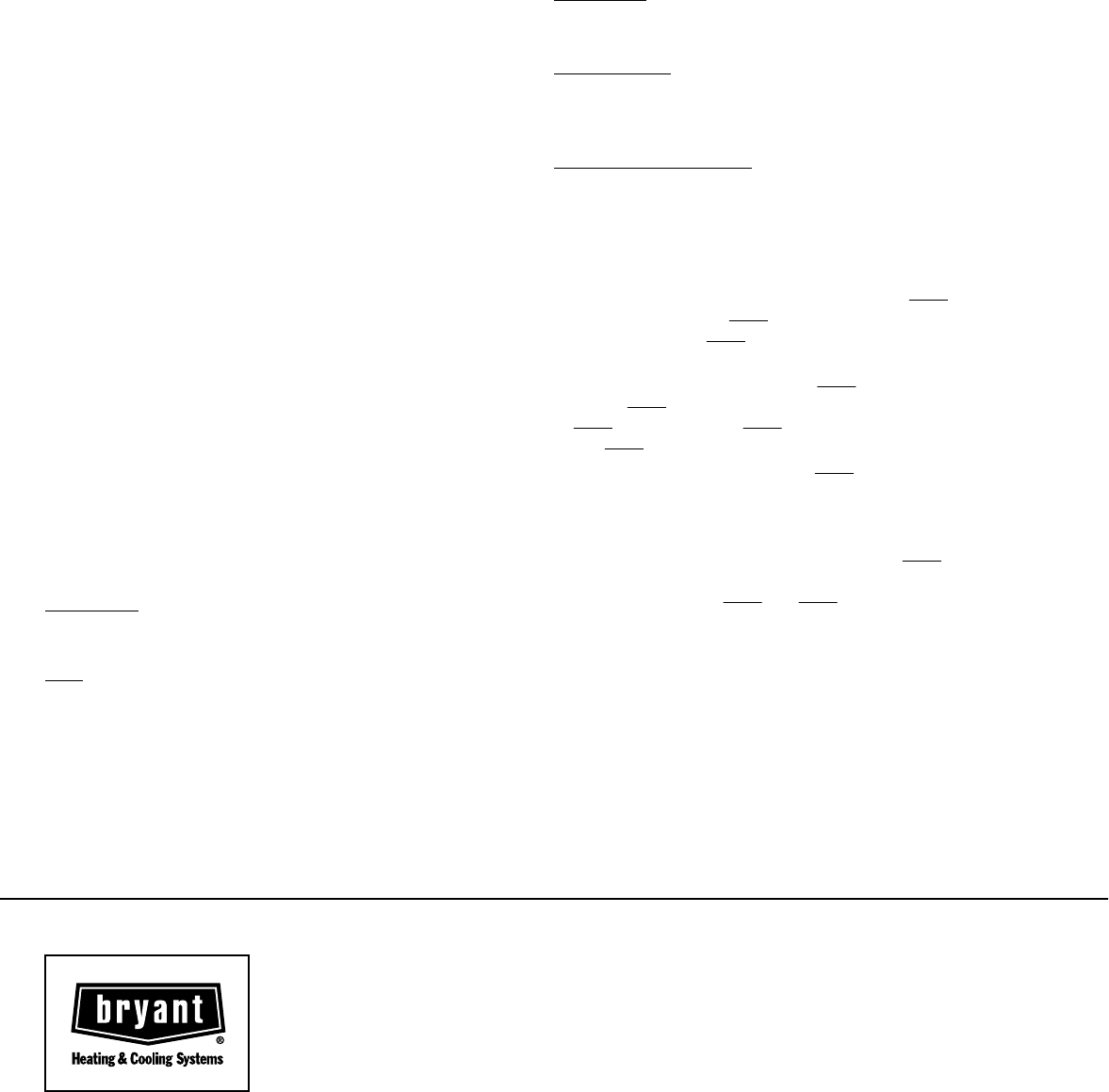 © 2003 Bryant Heating & Cooling Systems, 7310 W. Morris St., Indpls., IN 46231 PRINTED IN U.S.A. Catalog No. 5259-301 2-03