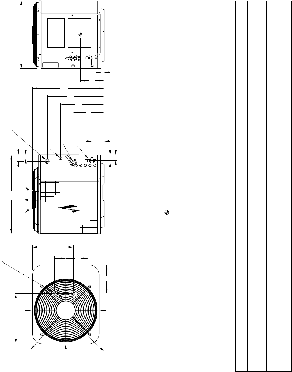 1. Intended for outdoor installation with free air inlet and outlet. Outdoor fan external static pressure available is less than 0.01-in. wc.