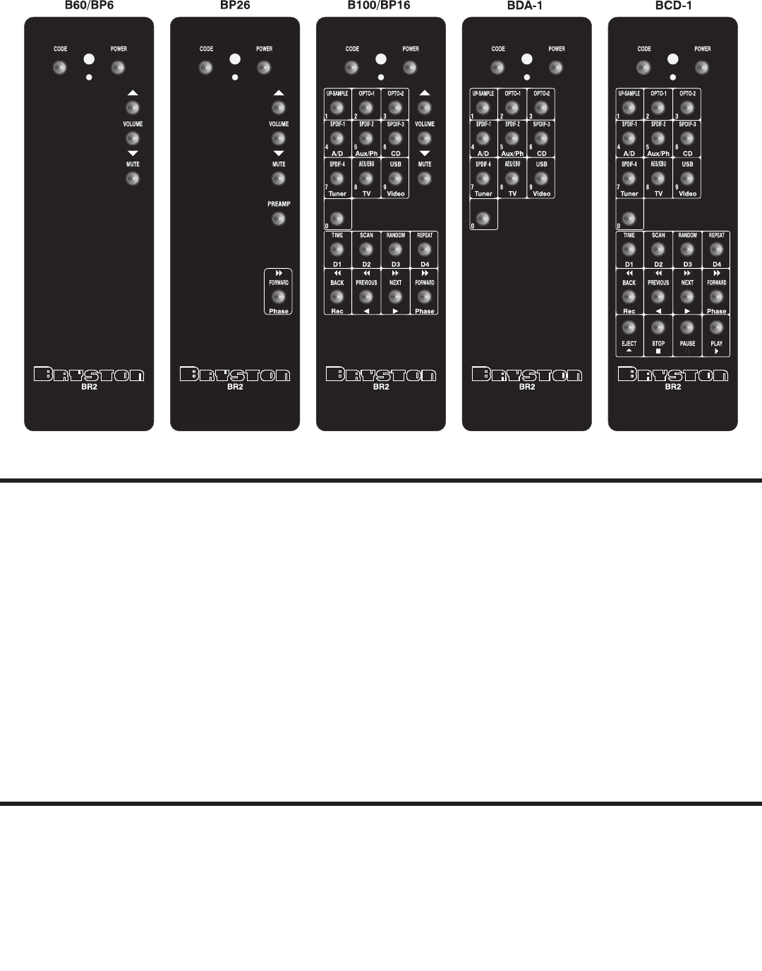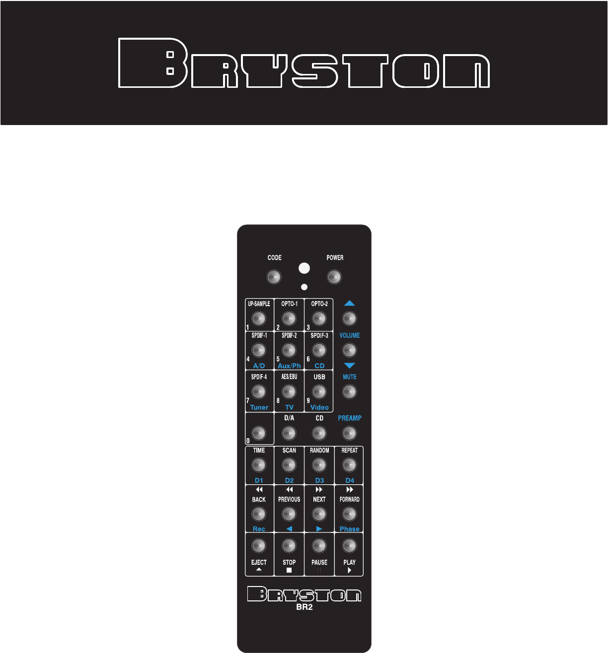The D/A, CD and PREAMPbuttonsallowswitchingBR2operationdirectlyamongstBryston’sBDA-1, BCD-1 and various