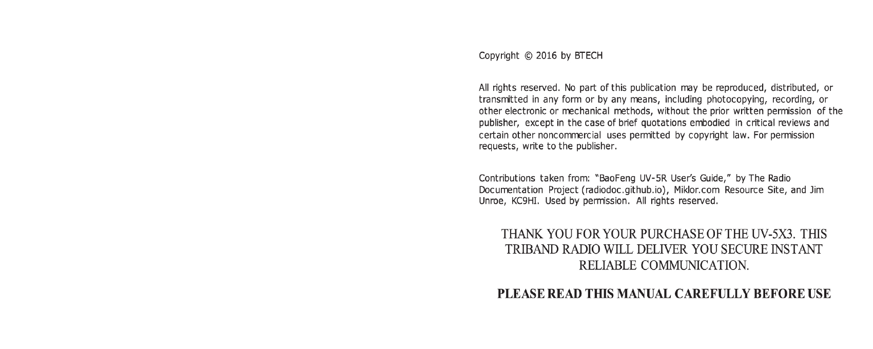 Btech 5X3 Tri-Band FM Amateur Radio User Manual