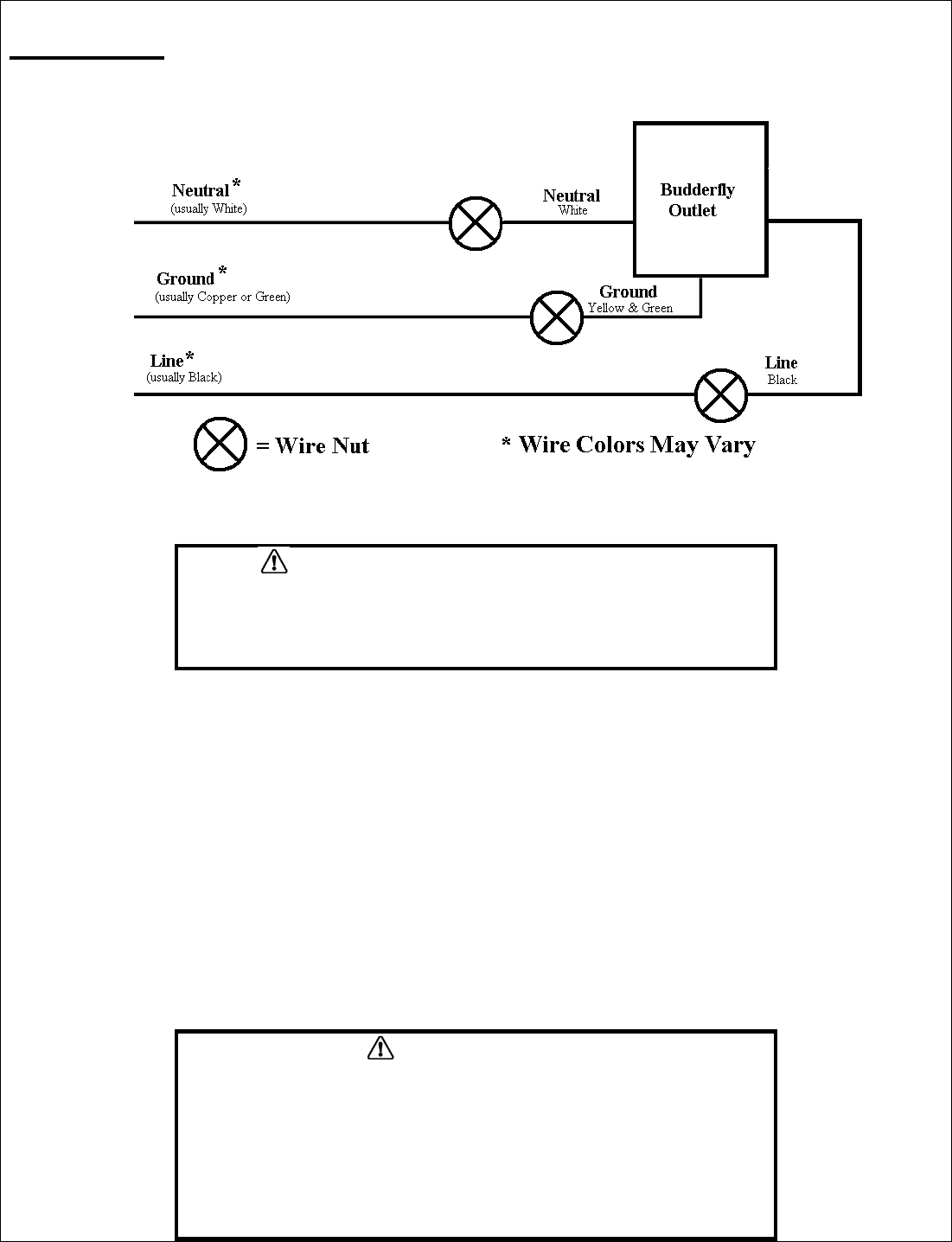 - Connect the LINE wire (usually Black) that comes from the electrical service panel to the HOT wire of Budderfly Outlet