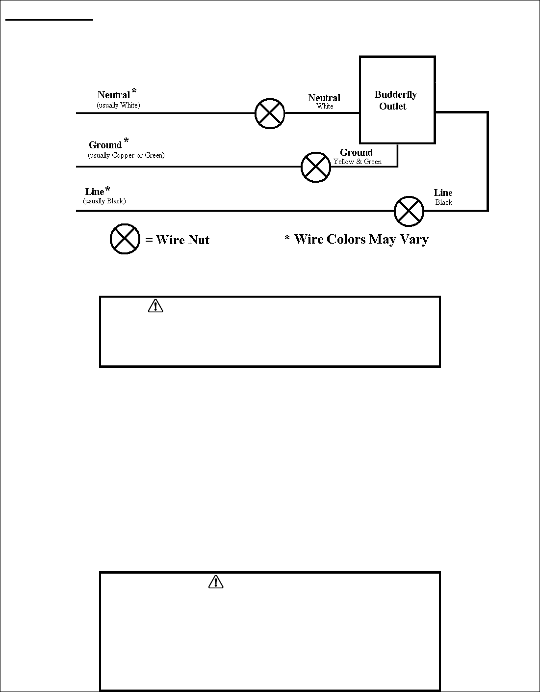 - Connect the LINE wire (usually Black) that comes from the electrical service panel to the HOT wire of Budderfly Outlet