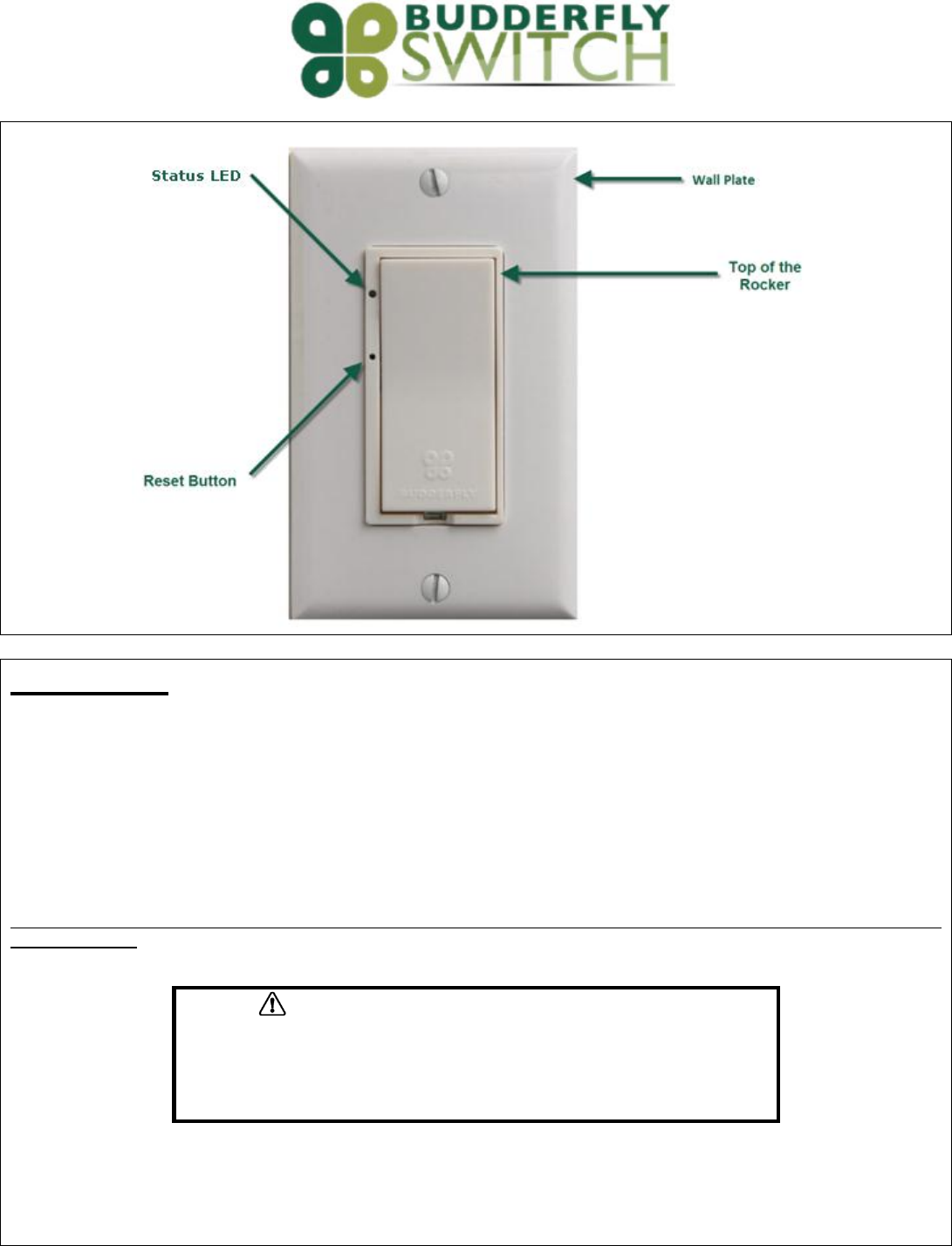 Important: Budderfly Switch is rated for and intended to only be used