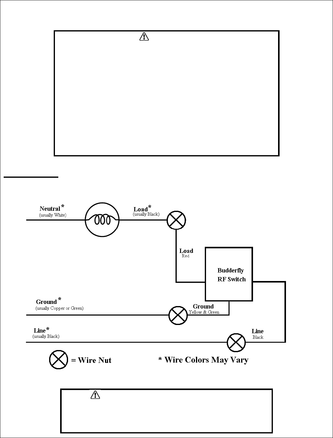 o Connect the LOAD wire (usually Black) that goes to the light to the LOAD wire of Budderfly Switch (Red).
