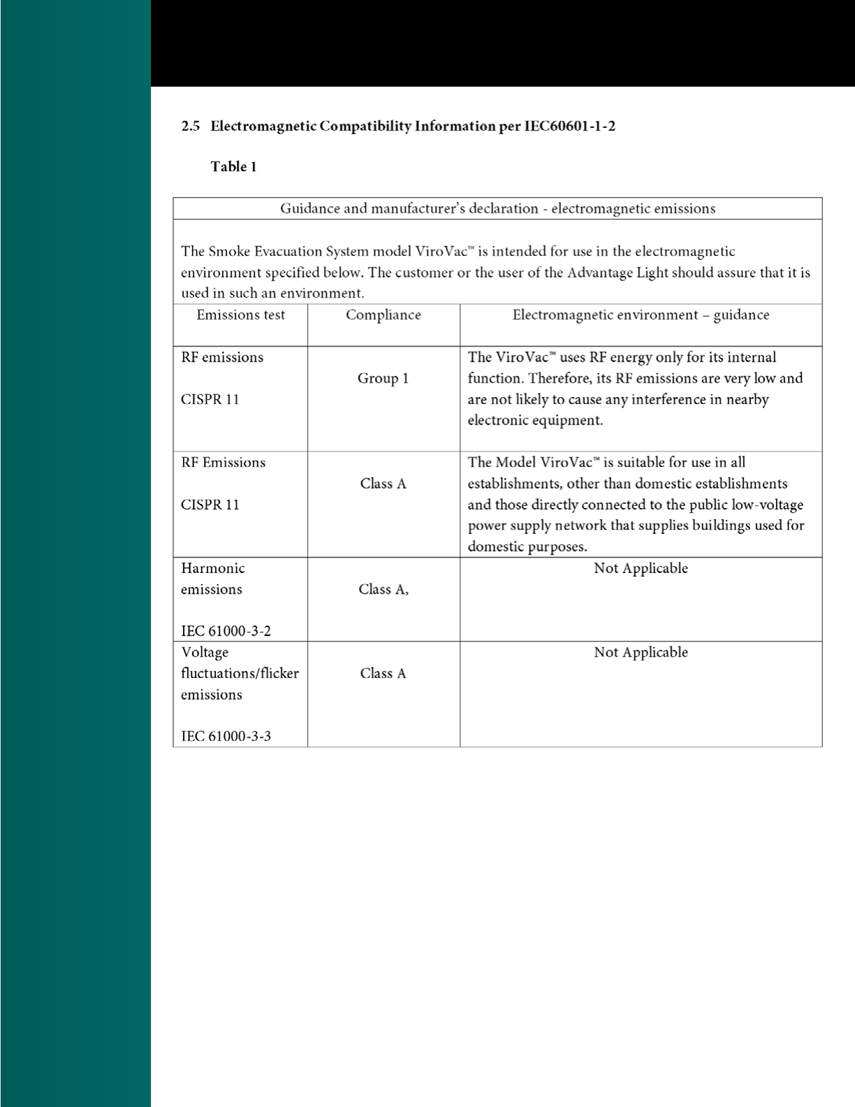 e ViroVac™ Smoke Evacuator has been thoroughly tested and inspected before shipment from