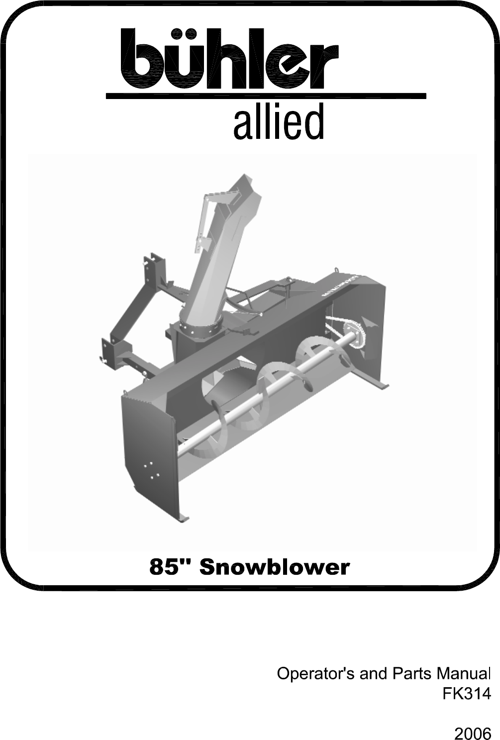 This manual covers the 85” model snowblower. When ordering parts, be sure to list the