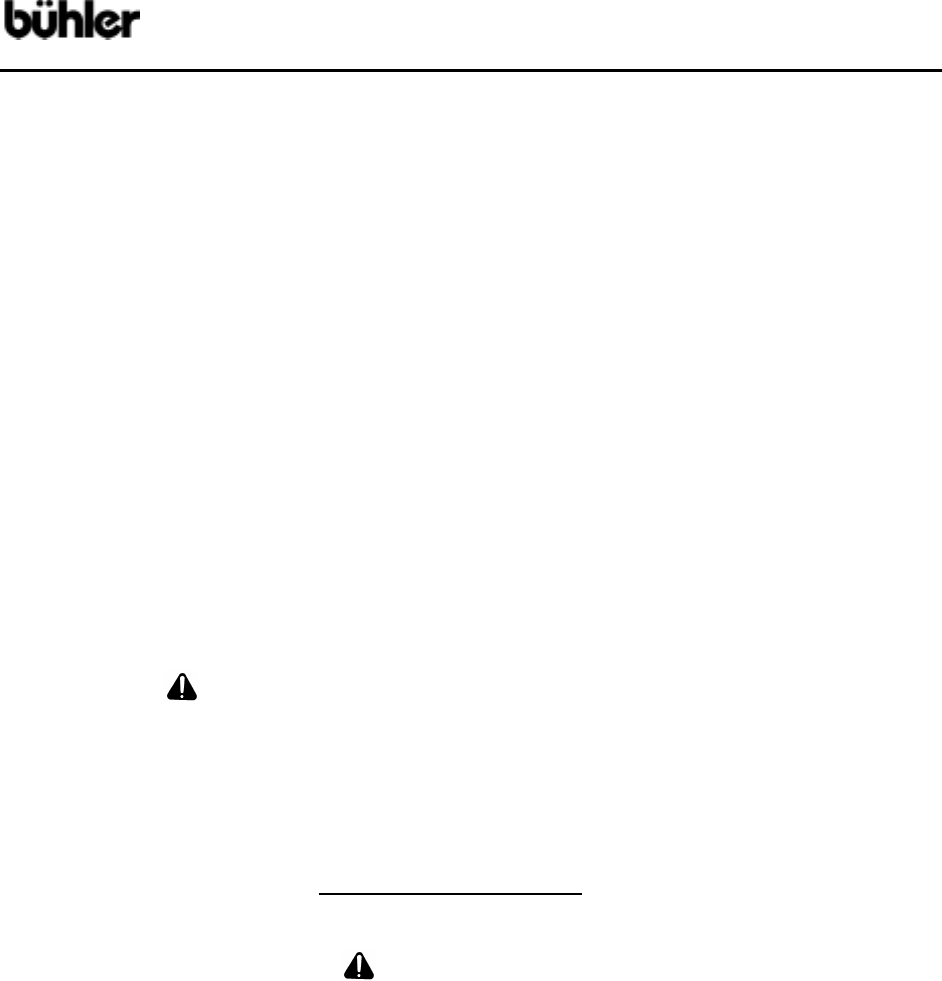 repaired by anyone other than an authorized Buhler Manufacturing representative.