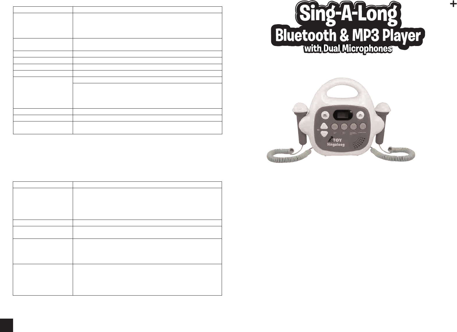 Bulk Un 0509 SING-A-LONG Bluetooth & MP3 Player with Dual Microphones User Manual 0509