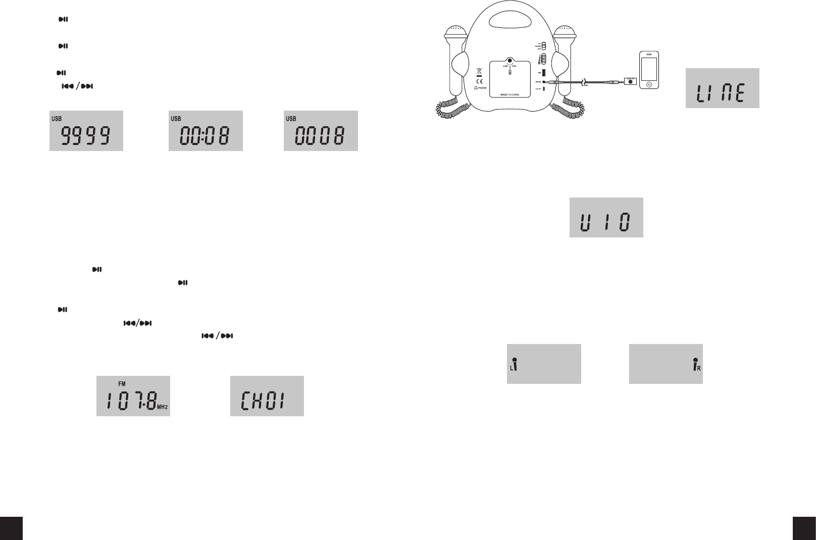 d、When no Line-in cable is connected in Line-in mode, the words “no” and “LInE” will indicate on