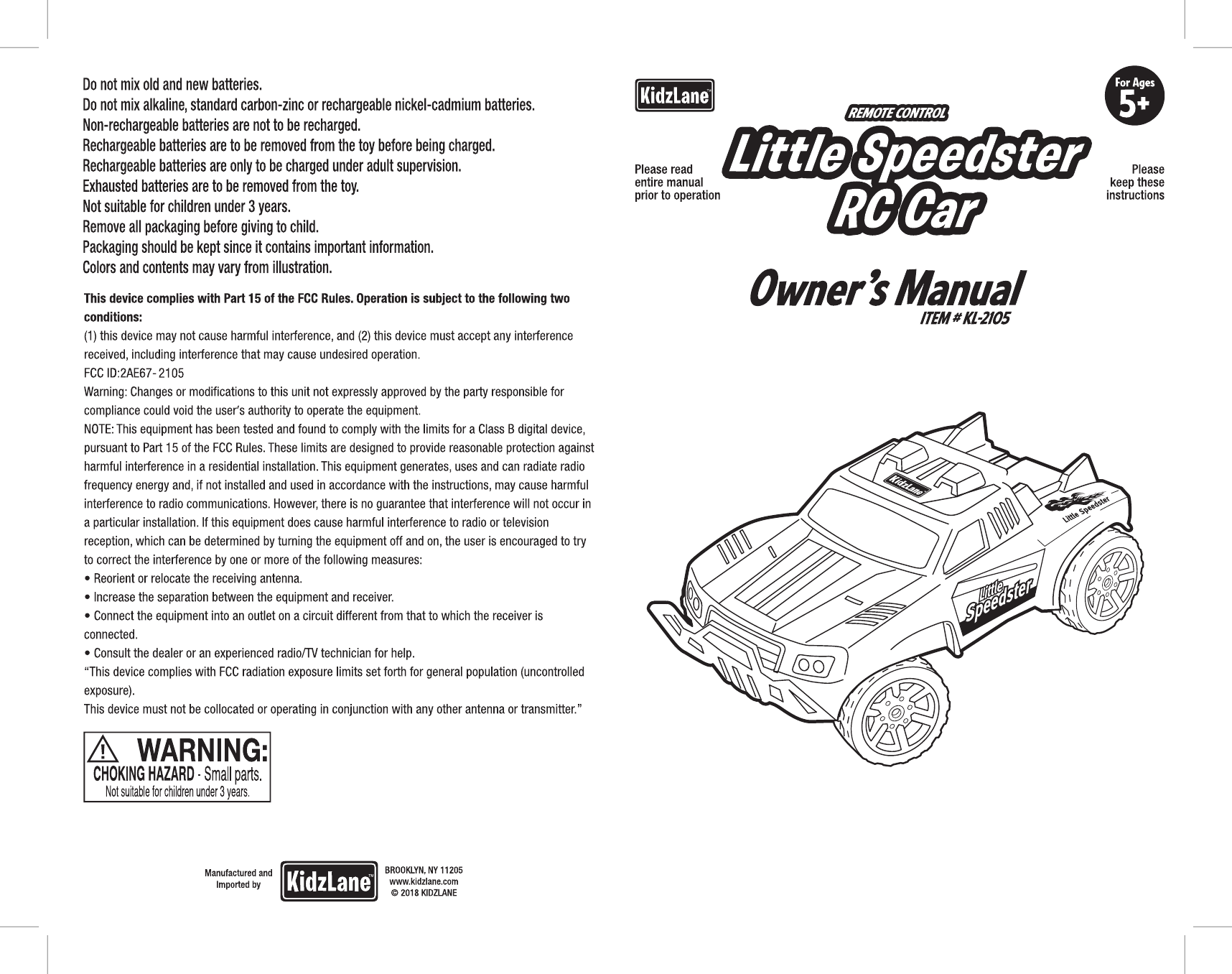 Bulk Un 2105 Little Speedster Car User Manual DHTRC10311K2 Instructions OUTLINED cs6