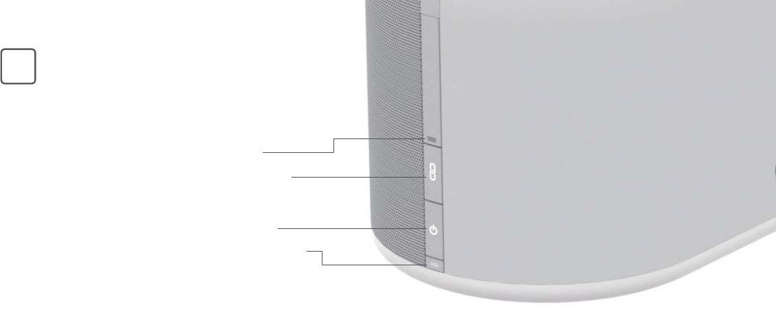 Press and hold (3 secs) to turn unit on/off. The status LED will turn amber whilst the speaker is starting