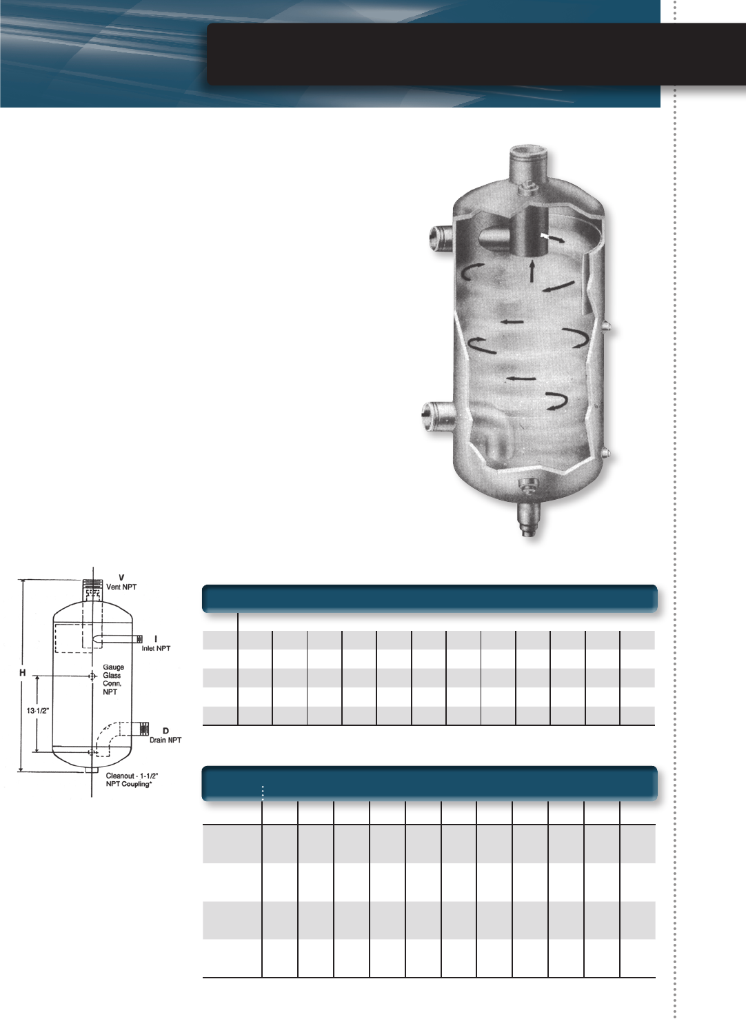• Eliminates moisture from process steam (cyclonic