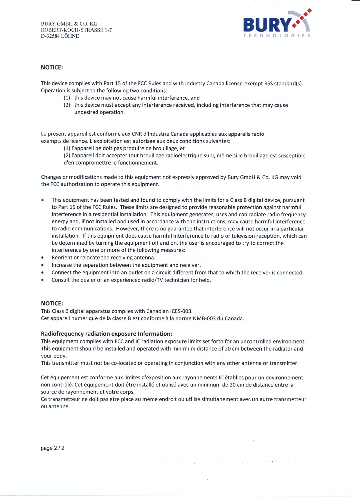 Bury GmbH & Co KG Control Unit for TSR about BT communication UserManual
