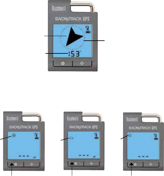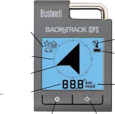 To use the BackTrack as a digital compass, simply PUSH the MODE/POWER button until you see the “Compass” (Arrow)
