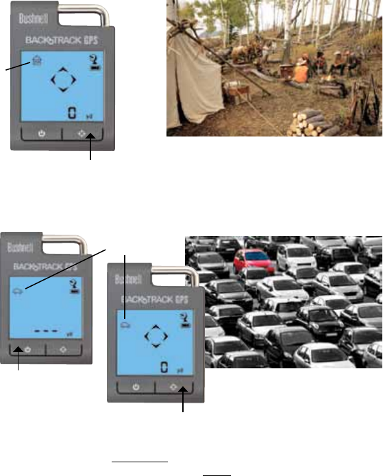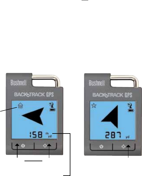 MODE/POWER button) and the BackTrack display will indicate the direction and distance back to the most recent