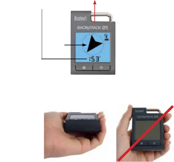 3. The BackTrack starts out in Compass Mode the first time you turn it on. An arrow points North, and the display shows