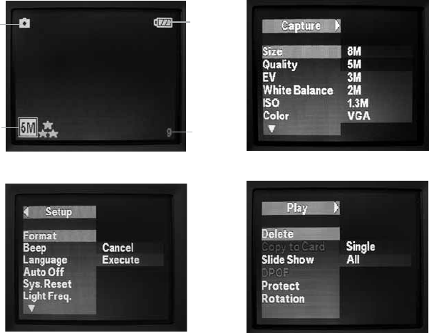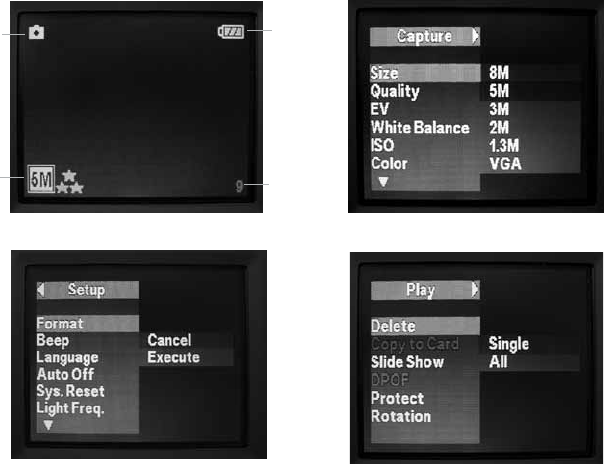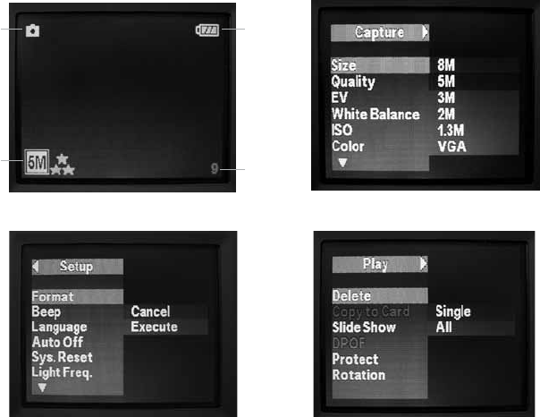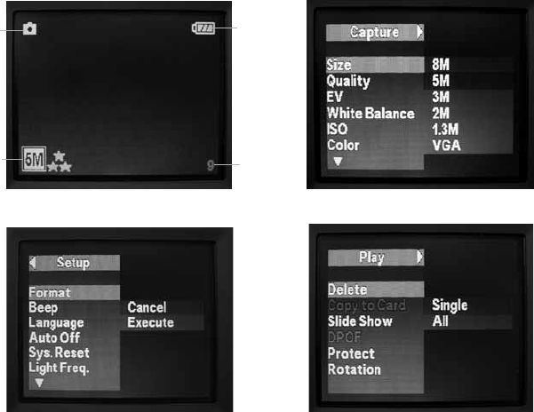 button (B) to enter the Capture menu (Fig. 1), then press the SNAP button (E) to enter the Set up menu (Fig. 2). “Format” is