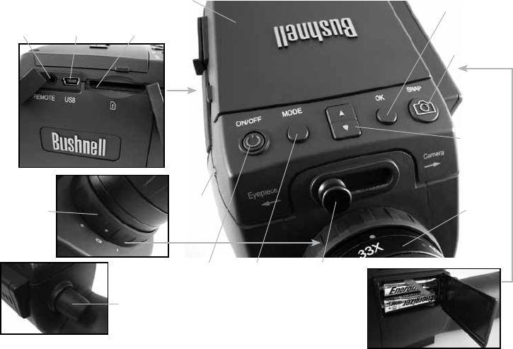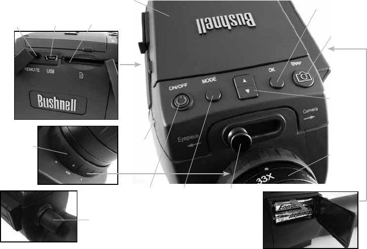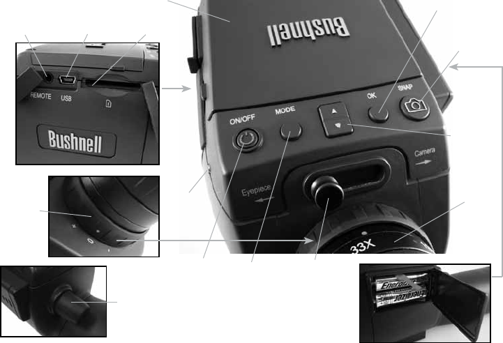 Plug the included remote shutter cable into the jack (K) to prevent jarring the scope when taking photos. The ImageView