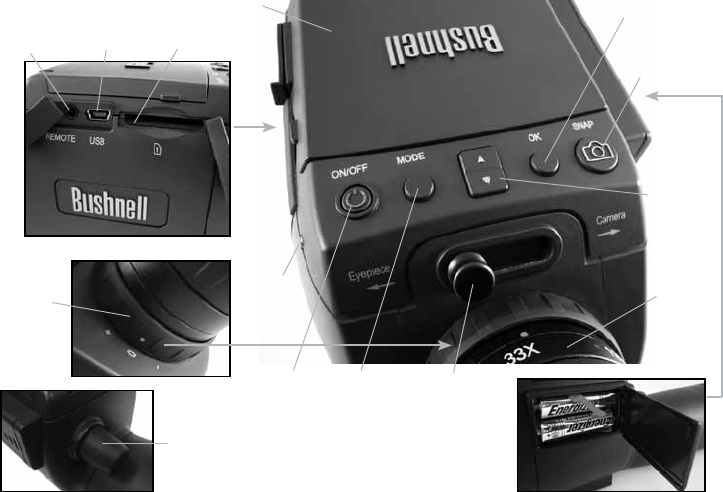 to get a sharp image of any object with fine detail. Next, switch the slider to the Eyepiece position, and set the zoom ring
